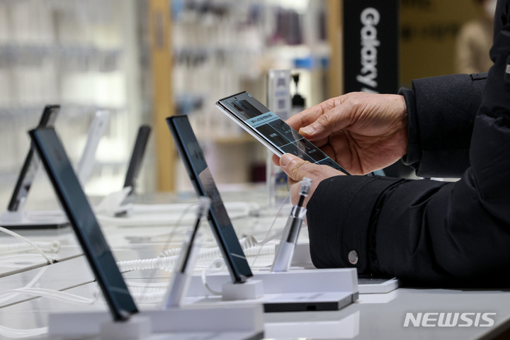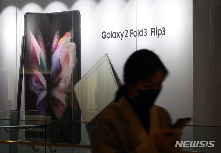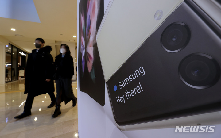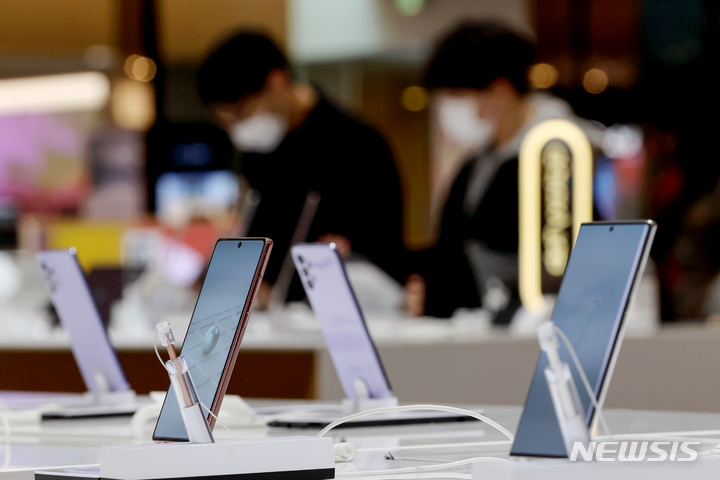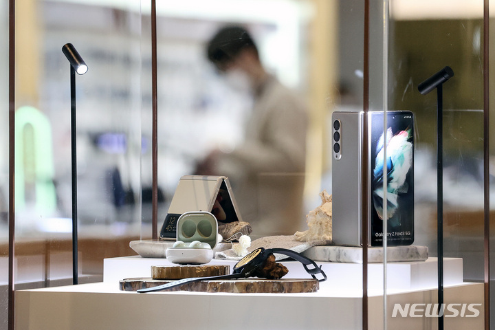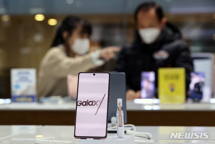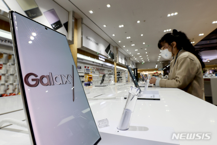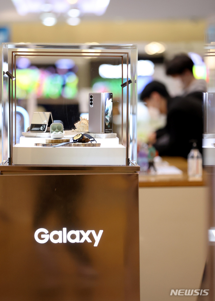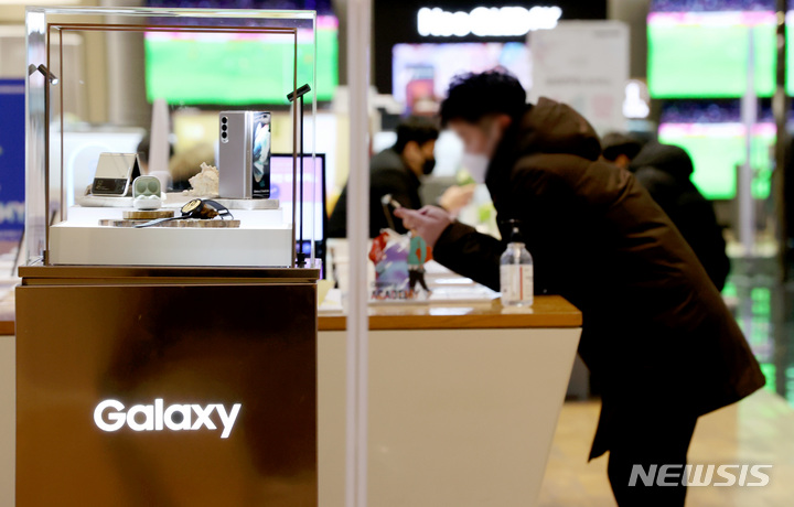 サムスン電子が昨年、世界のスマートフォン市場でAppleを抑えて販売量1位になった。写真は20日午後、サムスン電子瑞草社屋(ソウル市瑞草区)内にある広報館d’lightのショップの様子。