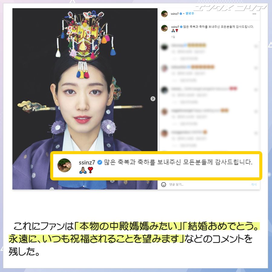 パク・シネ、お腹の大きな韓服姿&結婚所感を発表 「たくさんのお祝いに感謝」
