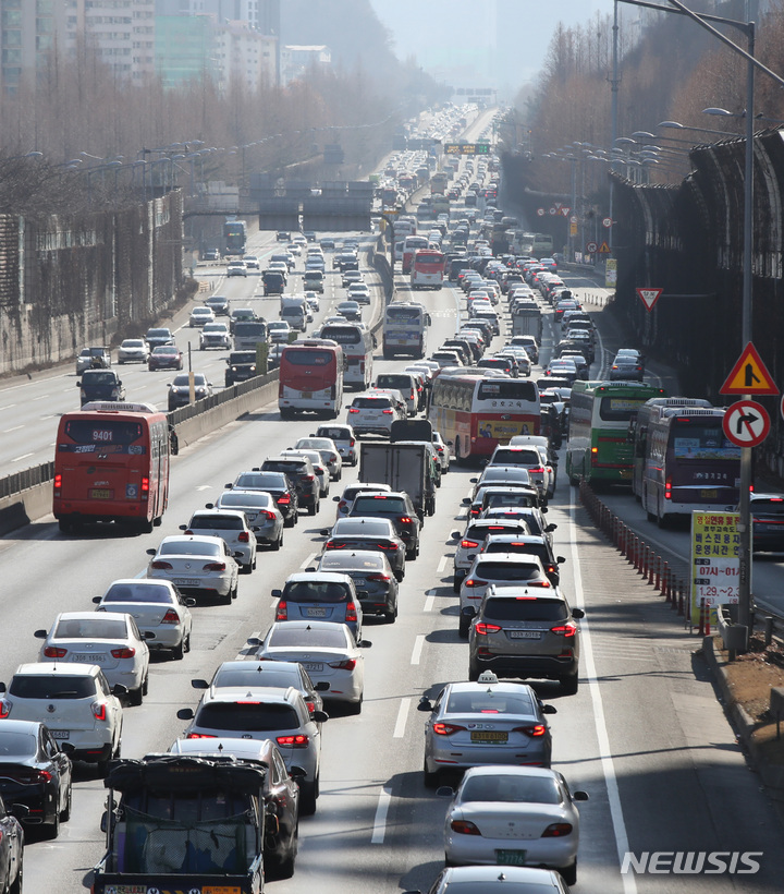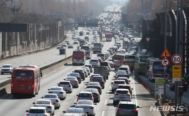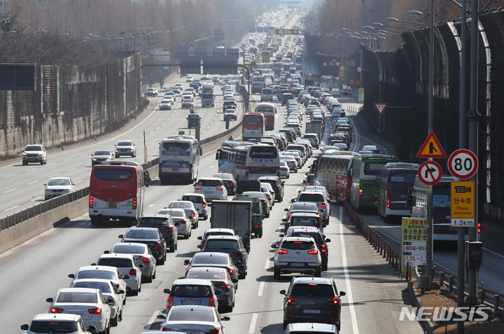旧正月(今年は2月1日)の連休初日となる29日午後、京釜高速道路盤浦インターチェンジ下り線は、帰省する多くの車が押し寄せて渋滞していた。