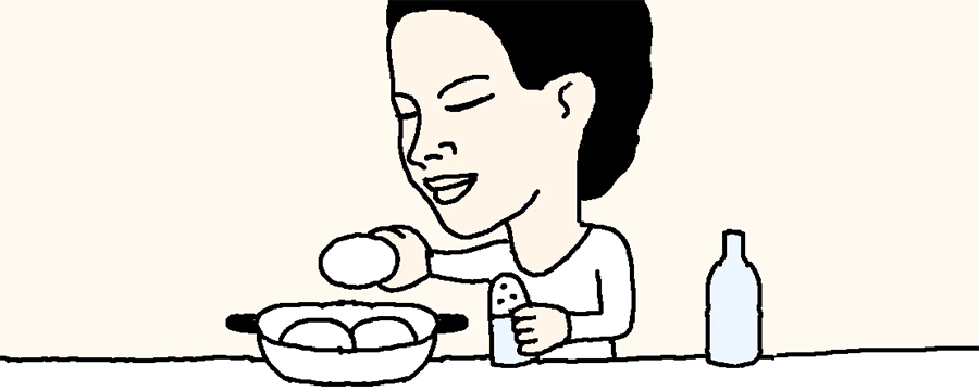卵をゆでる時、酢と塩を少し入れて、ゆで上がったらすぐに冷たい水に浸して冷やすと、殻がきれいにむける。
