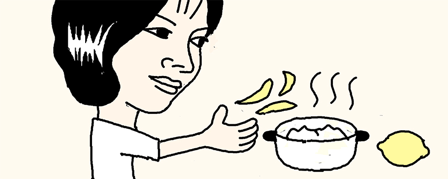 ふきんを煮洗いする時はレモンの皮を