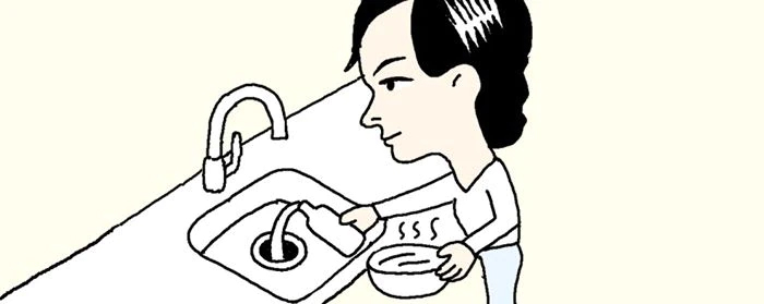 過炭酸ソーダ(過炭酸ナトリウム)を台所のシンクの排水口に半分ほど入れた後、お湯を少しずつ注ぐと、泡が出て汚れが落ち、つまりも解消される。