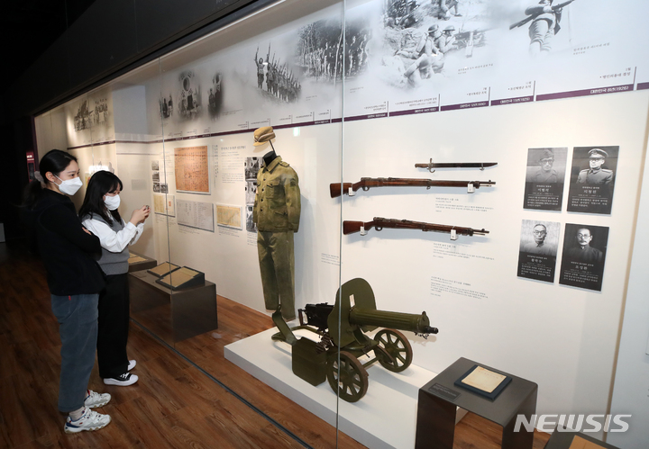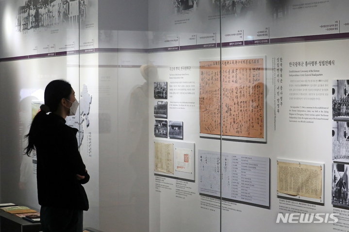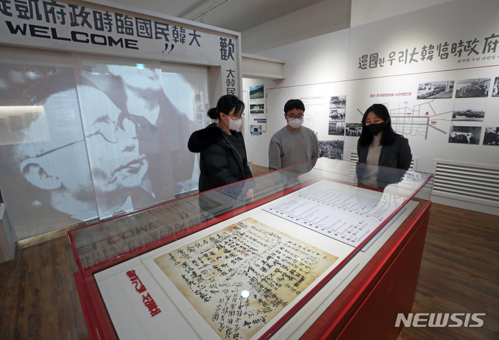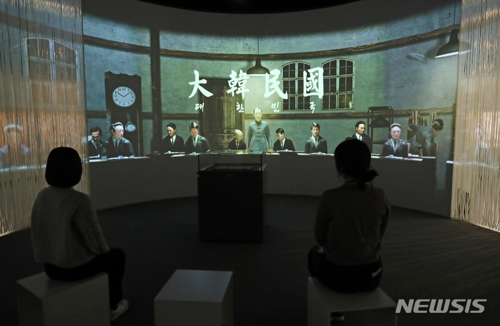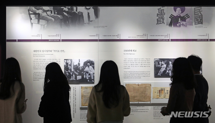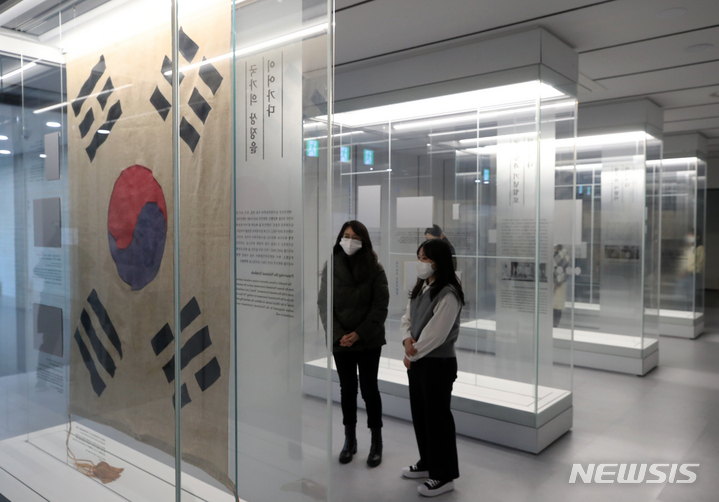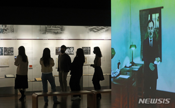 三一節(独立記念運動記念日)に当たる3月1日、ソウル市西大門区にオープンした国立大韓民国臨時政府記念館を訪れた市民たちが館内を見て回った。