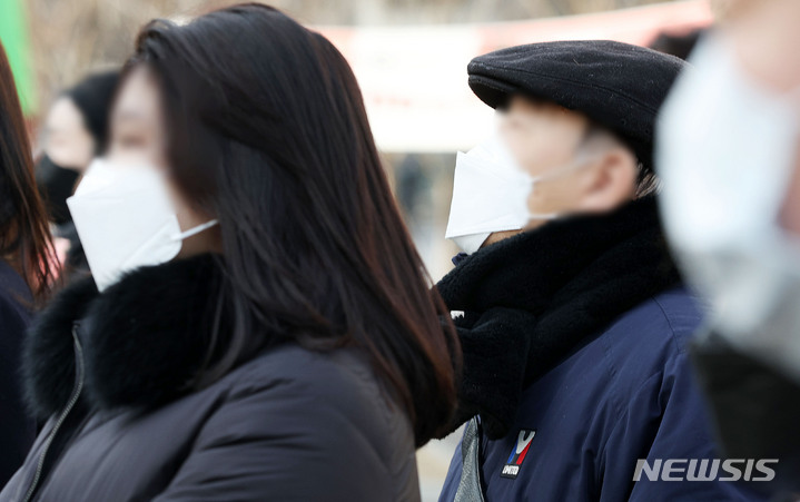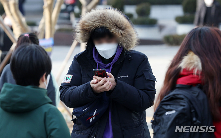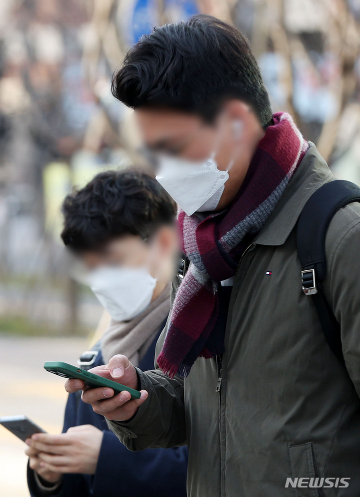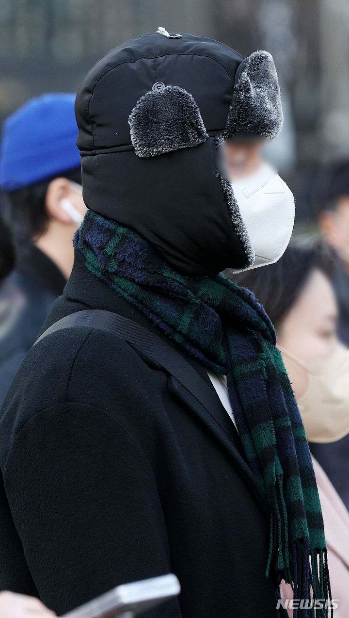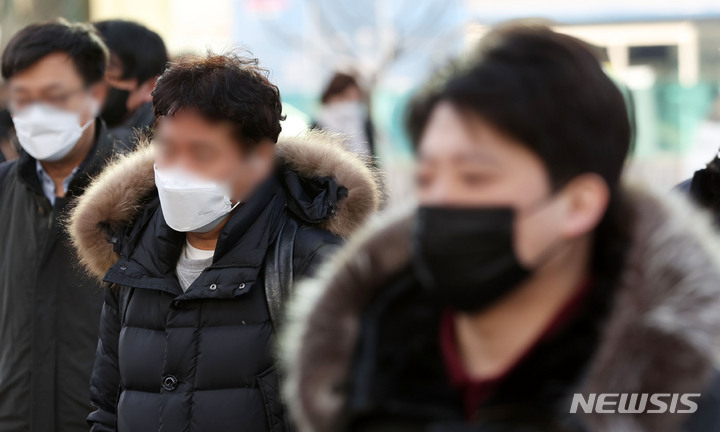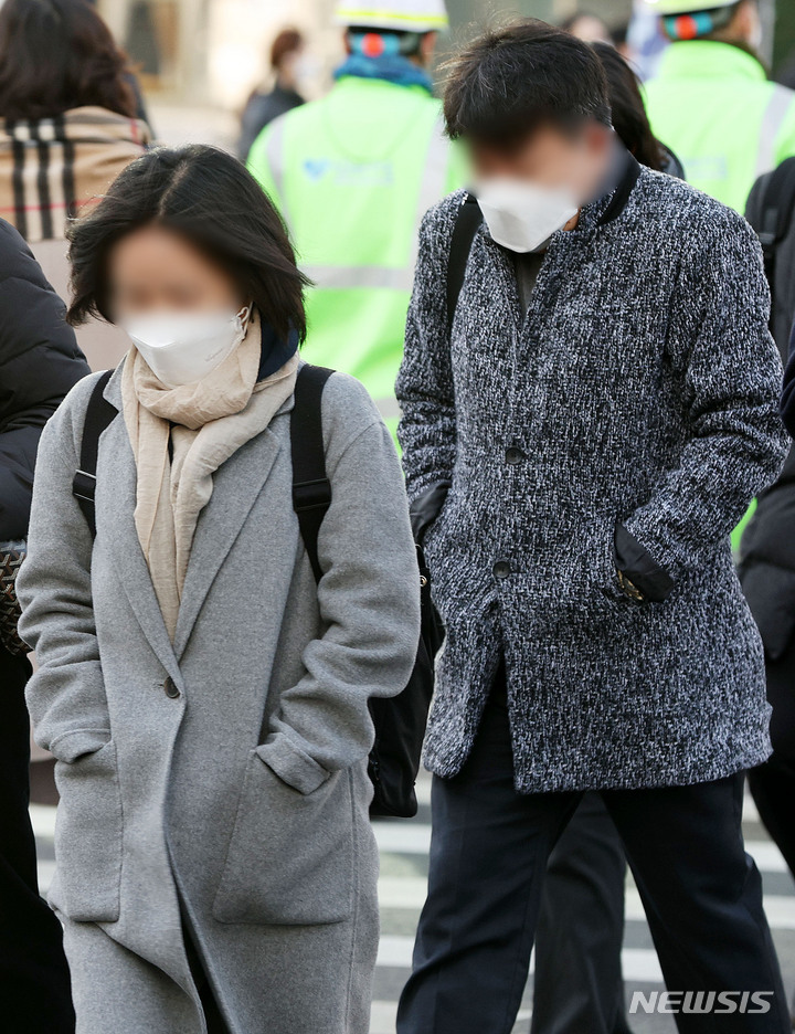【NEWSIS】全国的に氷点下となった7日午前、ソウル市鍾路区の光化門交差点で出勤を急ぐ人々。韓国気象庁によると、日中の最高気温は14℃まで上がり、昼夜の気温差は10℃以上になるとのことだ。
