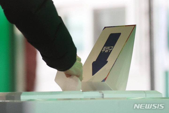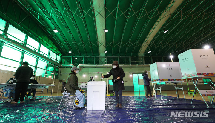第20代大統領選挙の投票日である9日午前、ソウル市西大門区の弘済バドミントン場に設けられた弘済第3洞第3投票所で有権者らが投票していた。