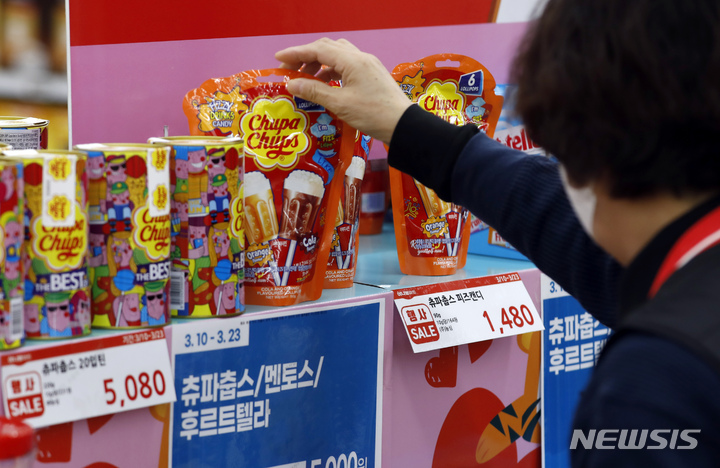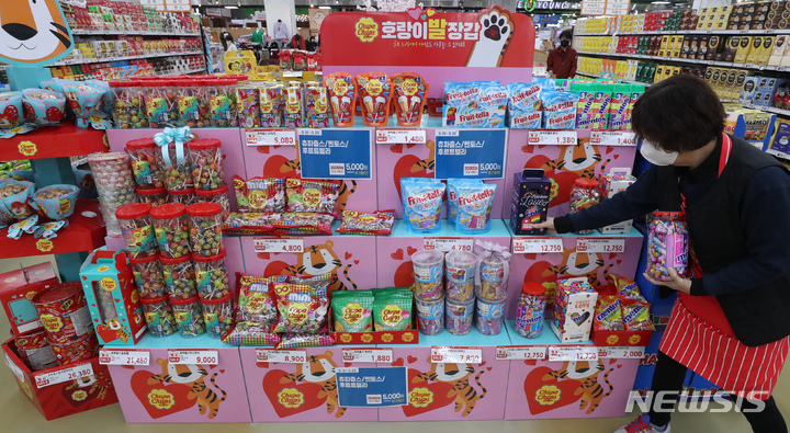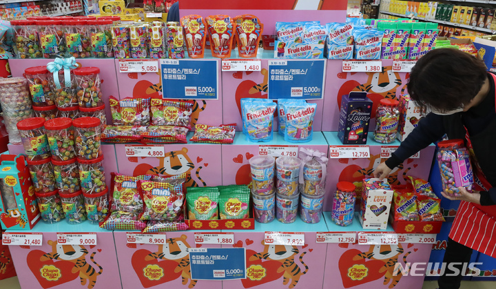 【NEWSIS】友達や恋人など愛する人にキャンディーをプレゼントする日として知られている「ホワイトデー」まであと一日となった13日、ソウル市内のある大型スーパーには、さまざまなキャンディーが陳列されていた。