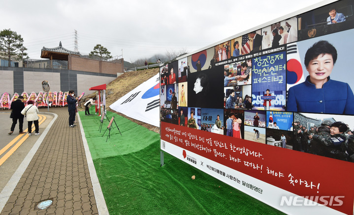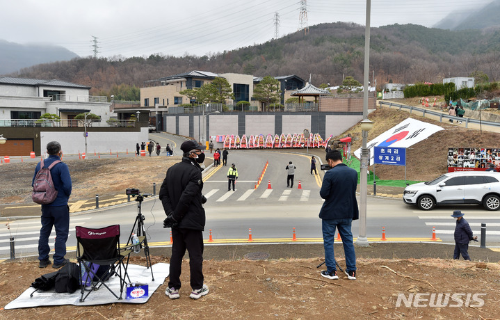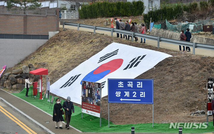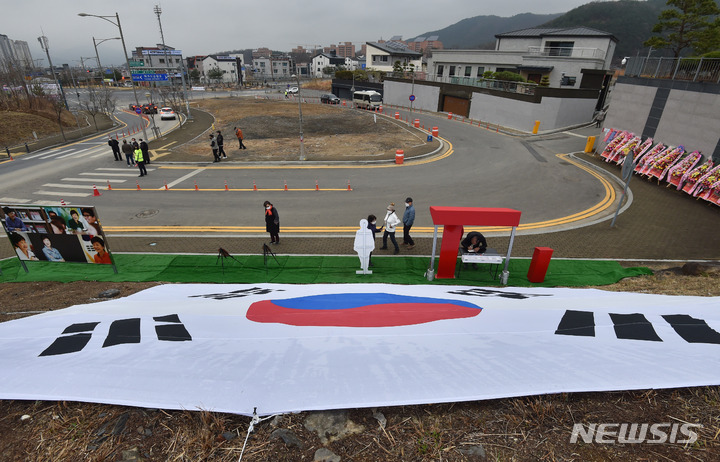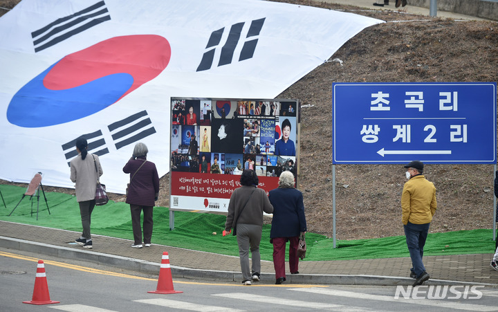 【NEWSIS】朴槿恵(パク・クネ)前大統領の私邸入居が近いというニュースが報じられた14日午後、大邱市達城郡瑜伽邑双渓里の私邸を見に来た人々。