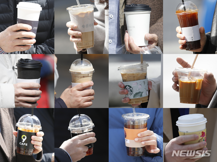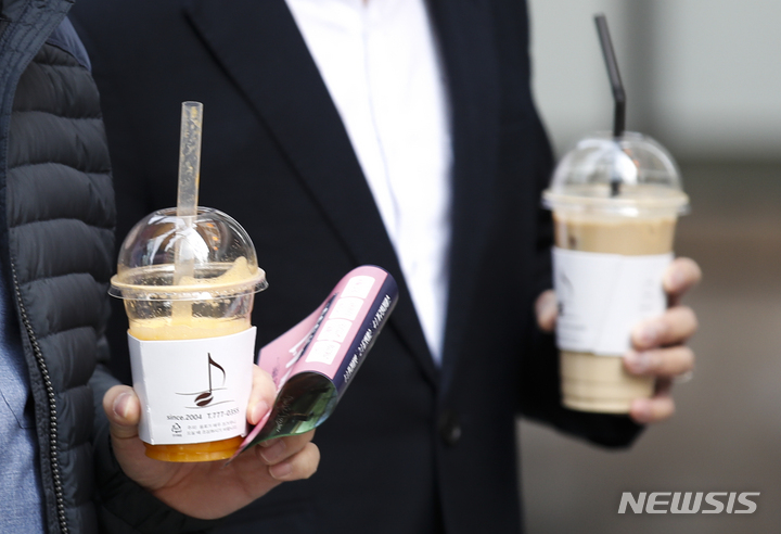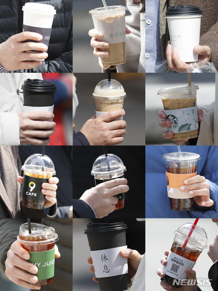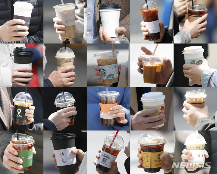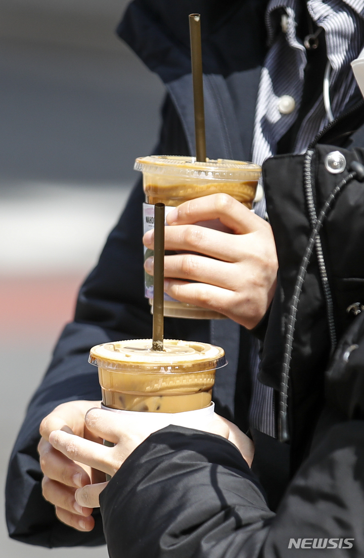 昨年の韓国のコーヒー輸入額が1兆ウォン(現在のレートで約981億円)を突破したことが明らかになった21日午後、 ソウル市内でコーヒーを手に歩いている市民の様子。