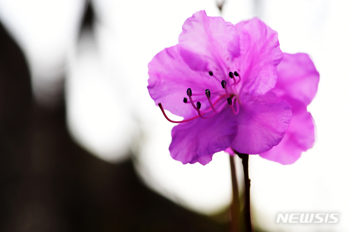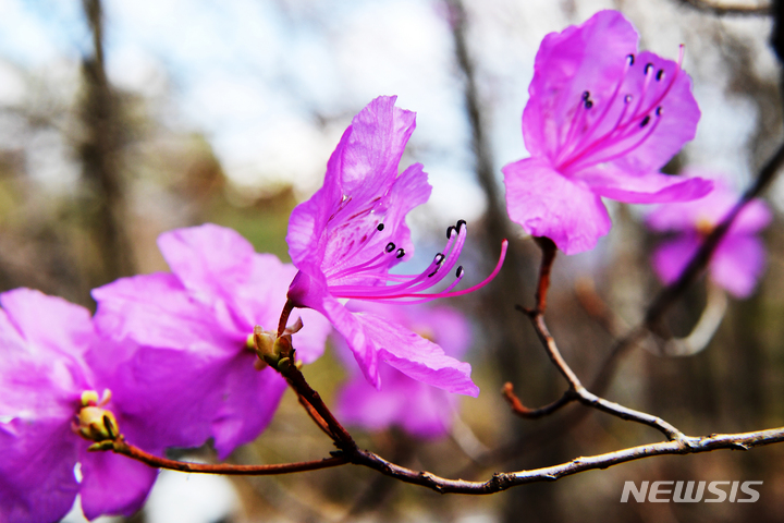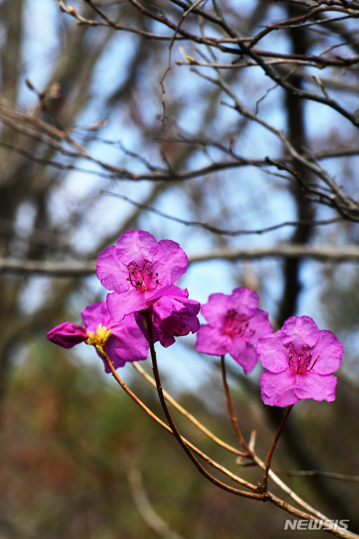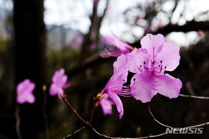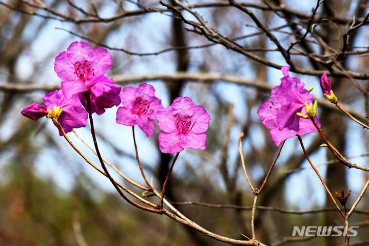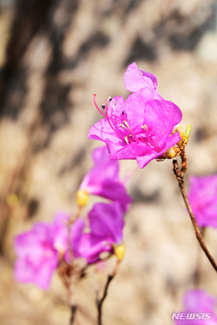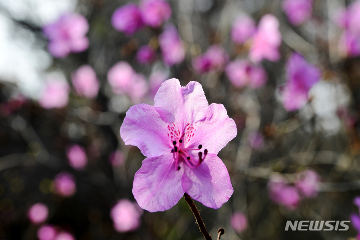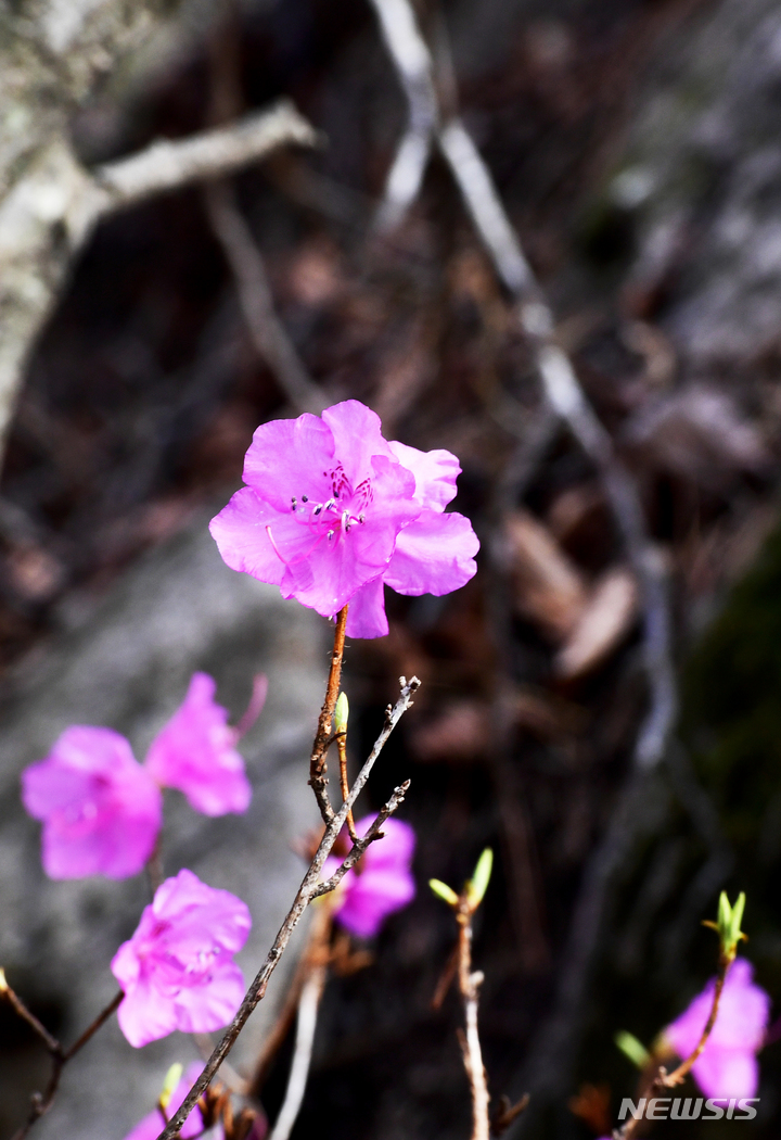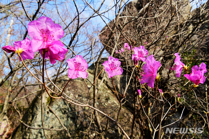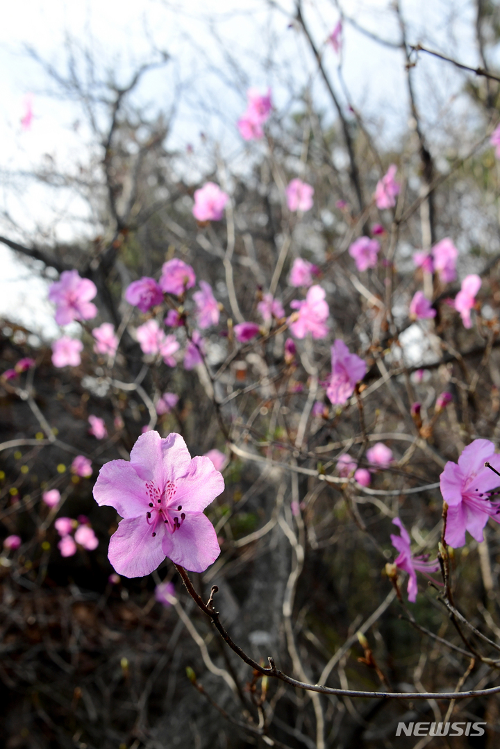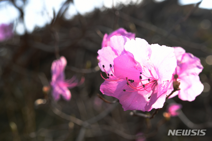 慶尚南道南海郡二東面近隣の山すそで24日午前、ツツジの花が咲き、春の訪れを告げていた。