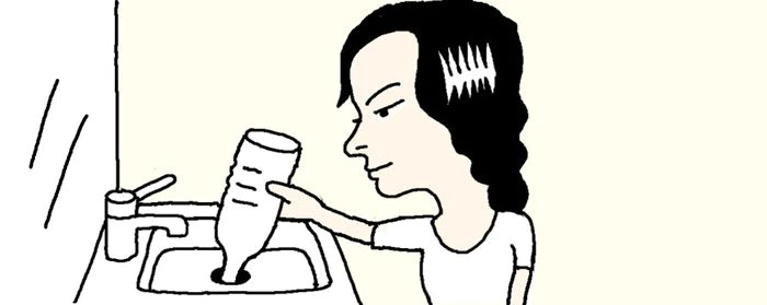 洗面台の排水管が詰まってしまったら、ふたを開けたペットボトルを穴に差し込んだ後、詰まっている水を吸い込んでから、ペットボトルを指で押すと、ラバーカップの役割をして異物のつまりが取れる。