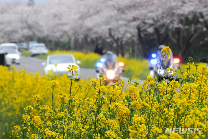 西帰浦市は、昨年に続き今年も新型コロナ拡大の懸念により「ドライブイン」方式で鹿山路菜の花祭りを開催する予定だ。車は、路肩に駐車や停車ができない。