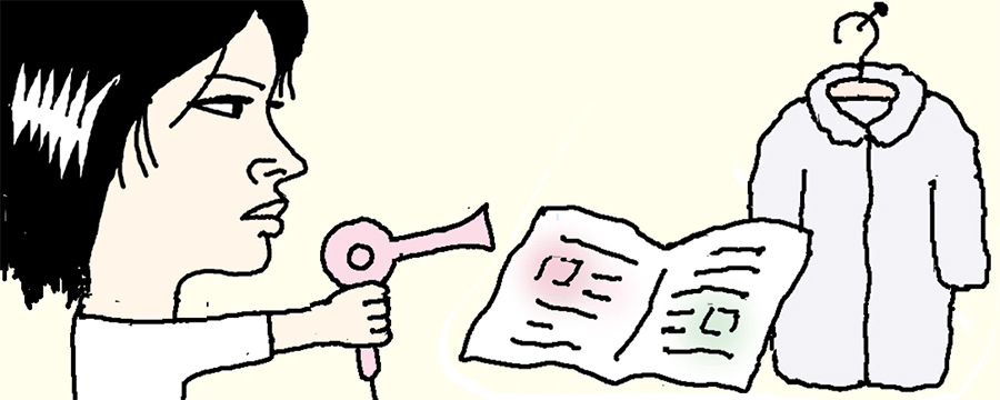 コートからにおいがする時は、新聞紙で包んでからヘアドライヤーで熱を加えると、においが新聞紙に吸収されてなくなる。