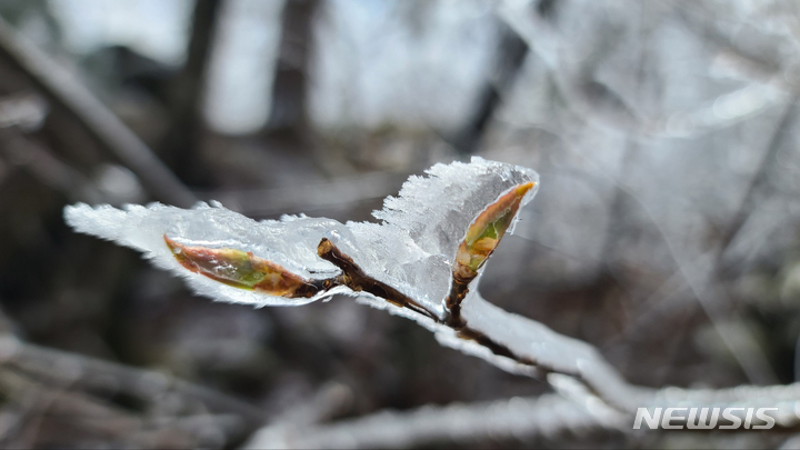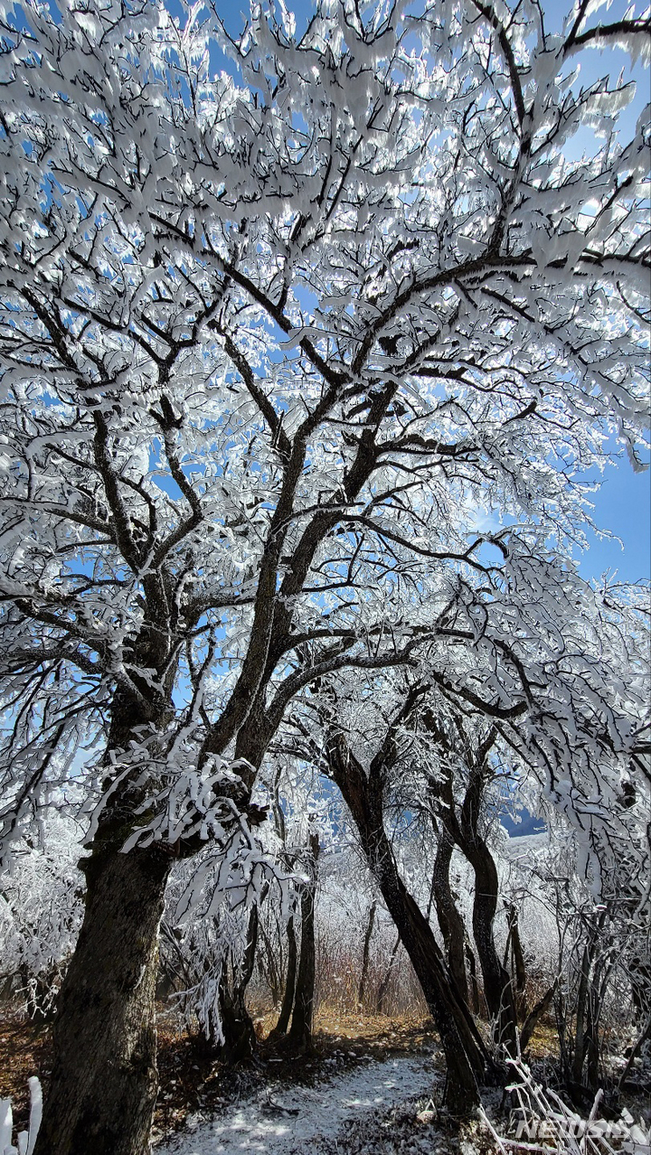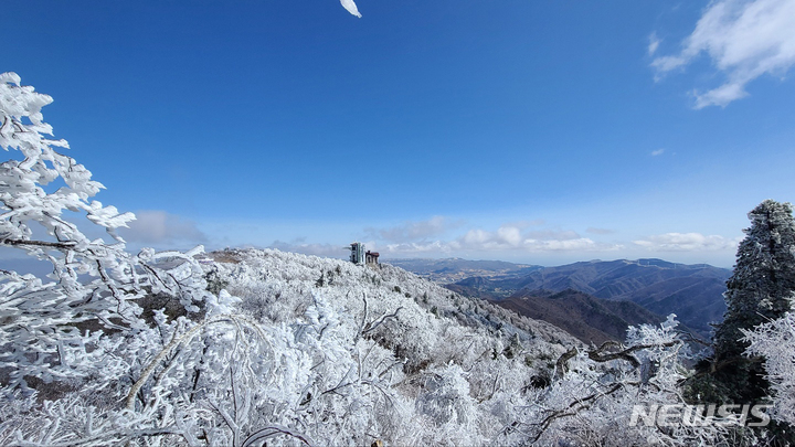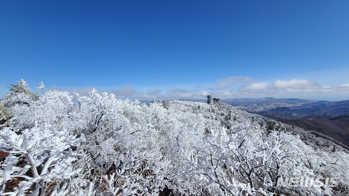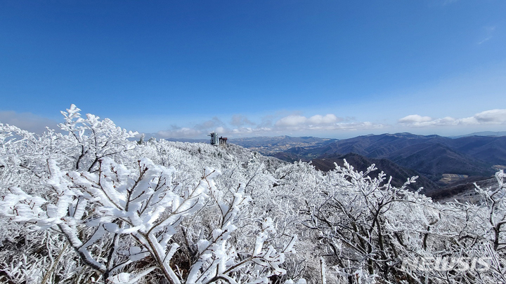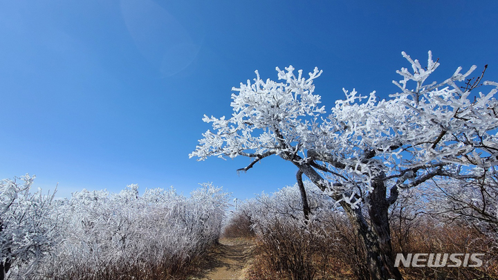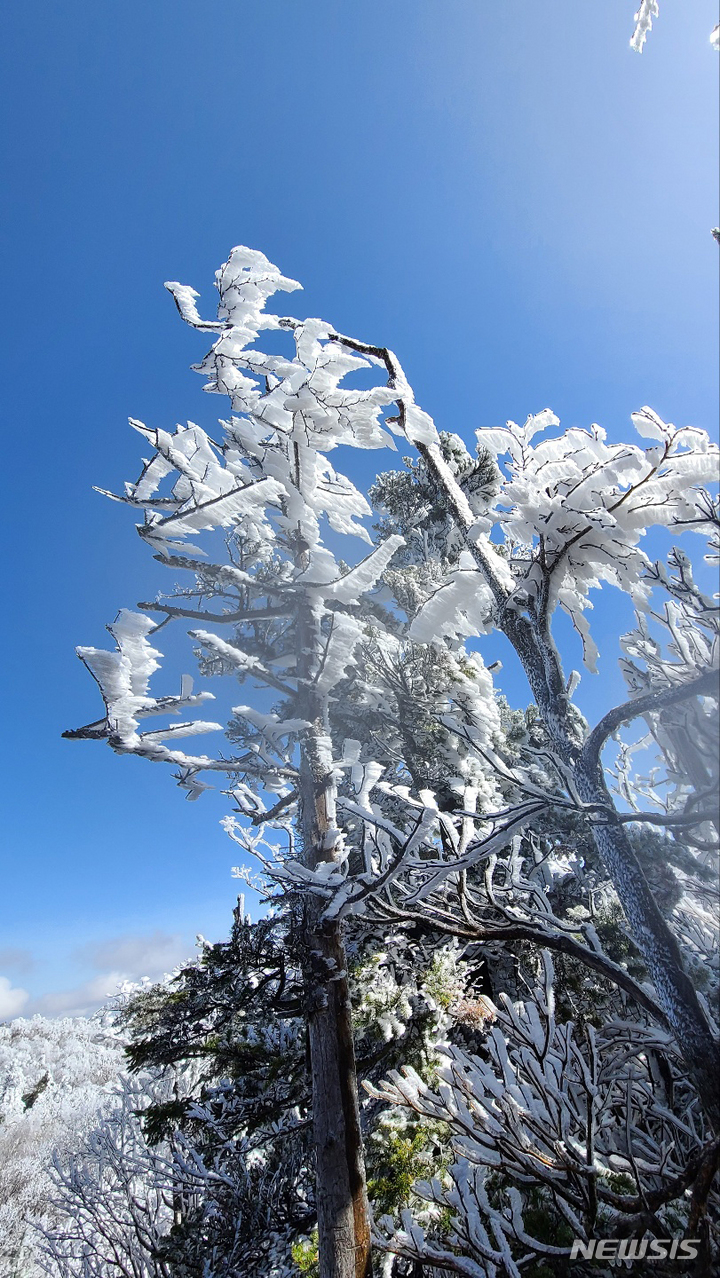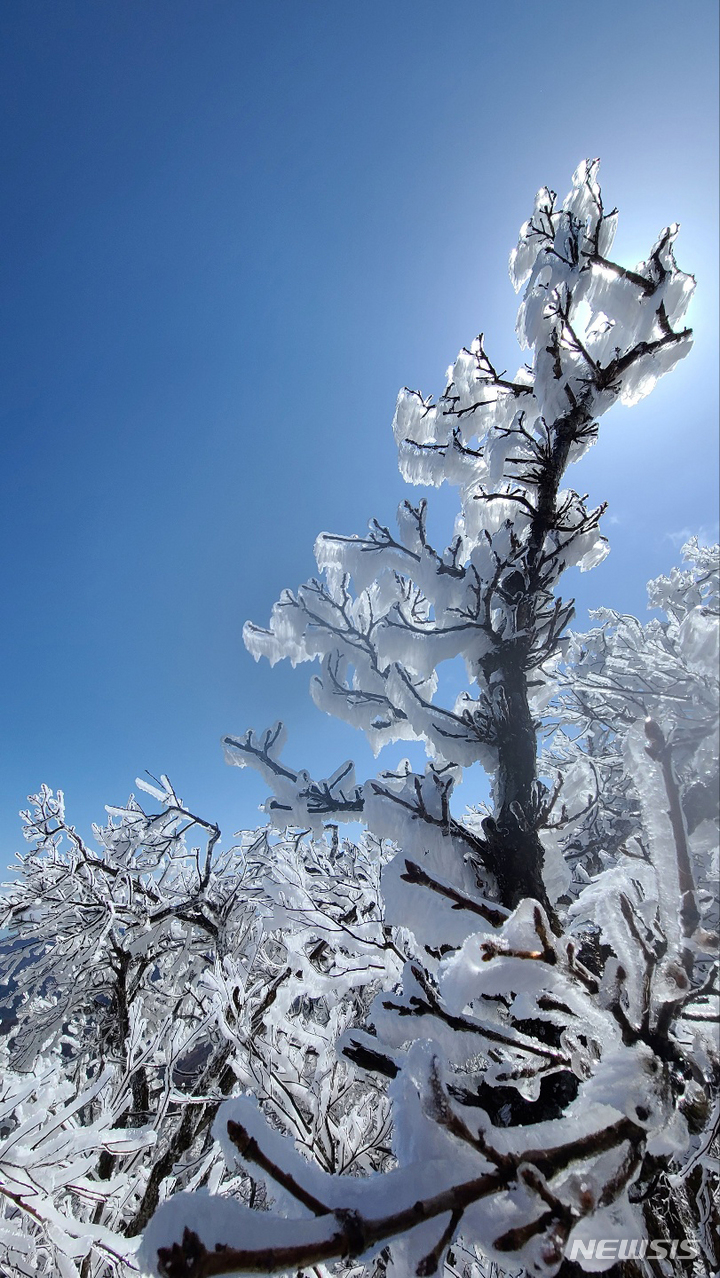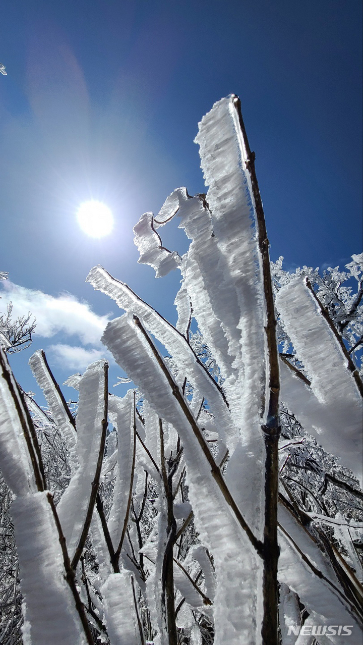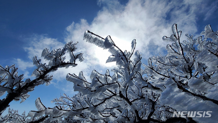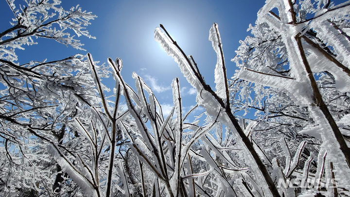 江原道平昌郡大関嶺面にある海抜1485メートルの発旺山では15日午前、樹氷が見られ、目を引いた。