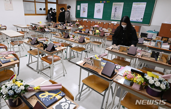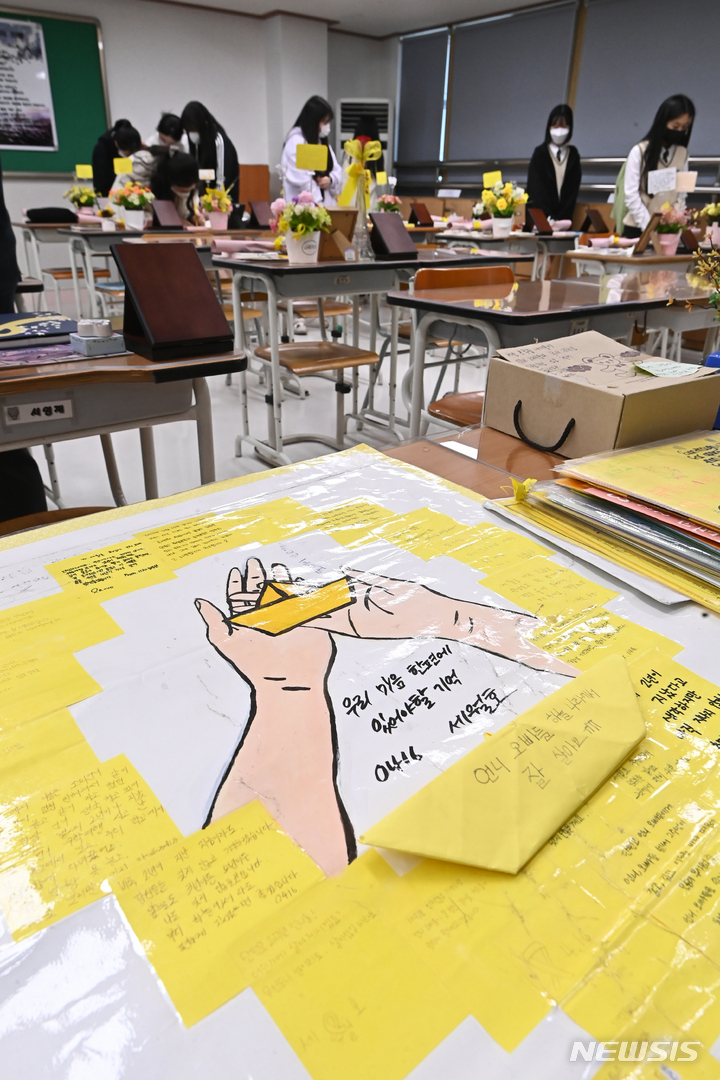 セウォル号沈没事故8周忌をあすに控えた15日午後、京畿道安山市の4・16民主市民教育院に用意された「檀園高校4・16記憶教室」では、同校の在校生らが教室を回りながら犠牲者を追悼していた。
