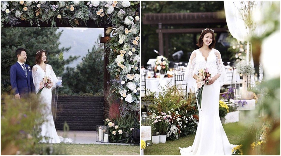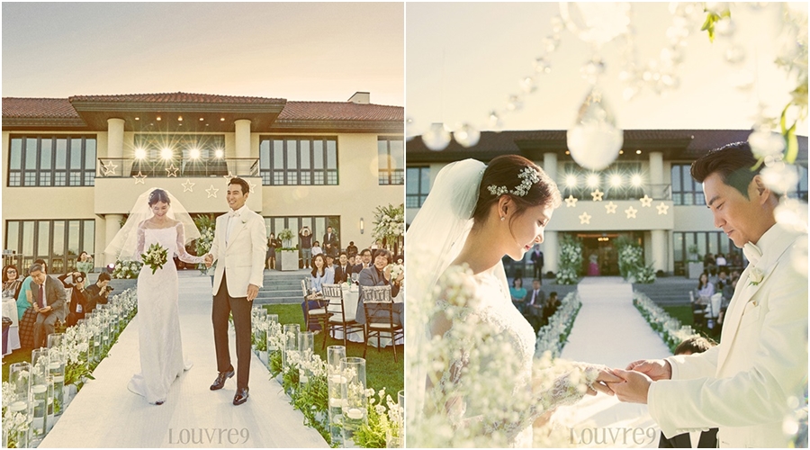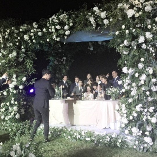 ヒョンビンとソン・イェジンは春の結婚式にピッタリのピンク、ホワイトトーンのふんだんな花飾りで一段と華やかさをにアップ。美しい花飾りを背景にした二人の姿は、まるで映画のワンシーンのようだ。結婚式の第2部でソン・イェジンは淡いグリーンのドレスを身にまとい、ハーフアップのヘアスタイルにして花を飾り、よりいっそう美しさが際立っていた。