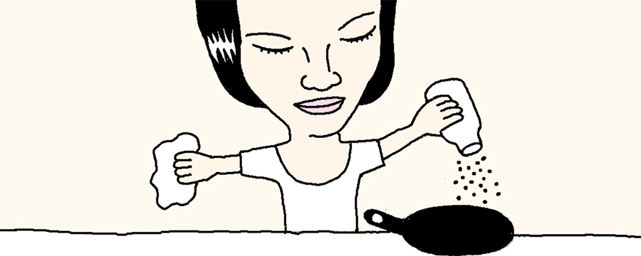 フライパンや鍋・皿などに残った油分は、コーヒーかすをつけてこすってからすすぐと楽にスッキリ落ちる。