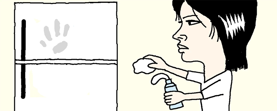 冷蔵庫の取っ手や表面に付いた手の跡や汚れは、歯磨き粉をウェットティッシュやスポンジにつけてこすり、きれいなウェットティッシュでもう一度ふき取ればきれいになる。