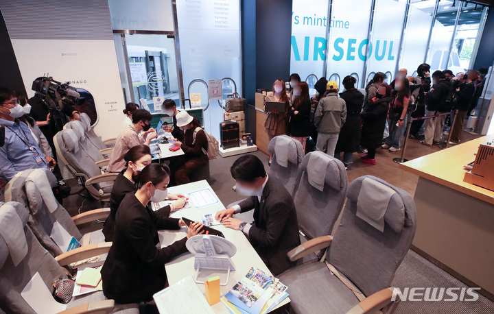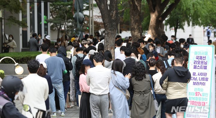 グアム往復航空券が10万ウォン台! 長い列をつくる市民たち