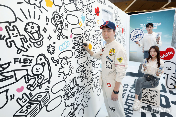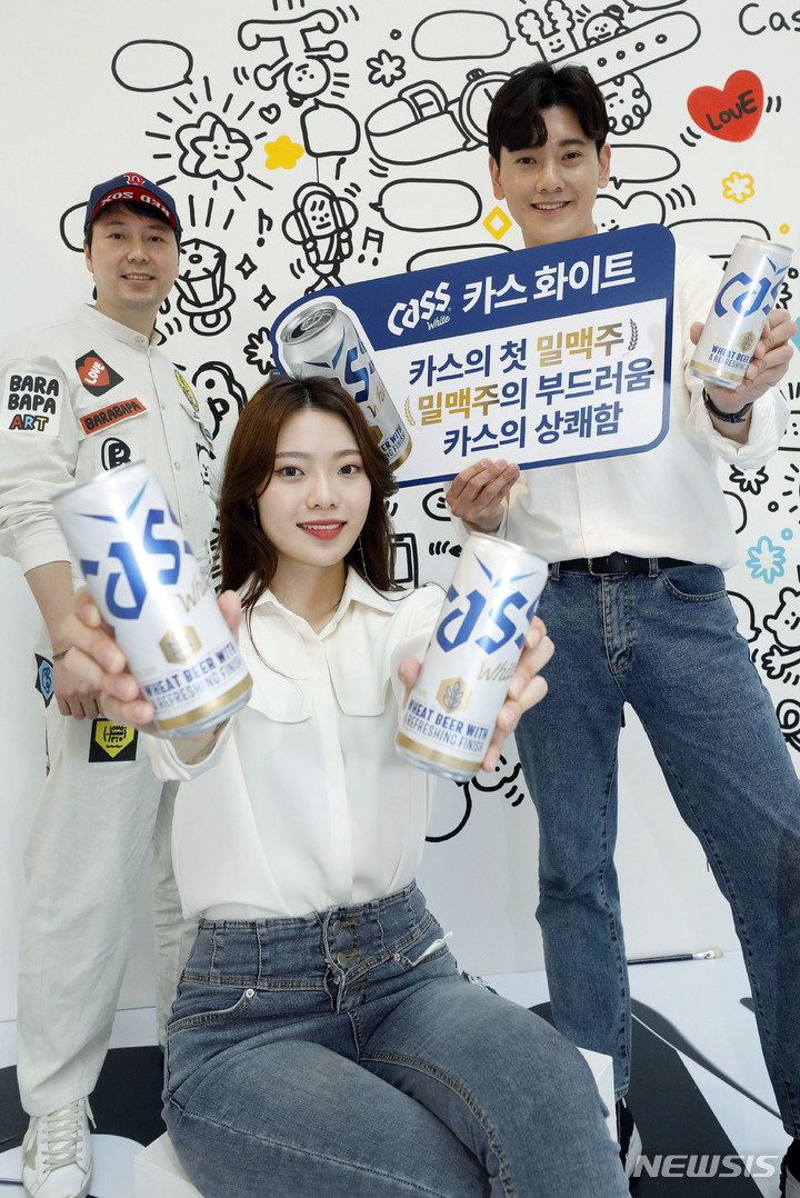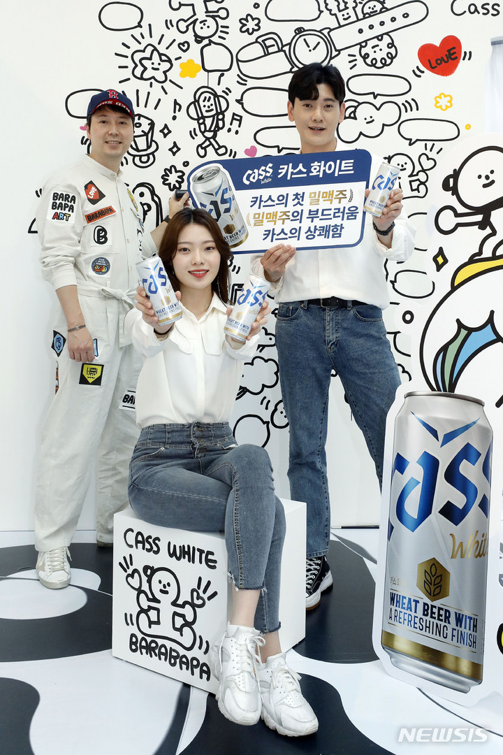 ソウル市永登浦区汝矣島洞のIFCモールで28日、OBビールの「CASSホワイト」PRイベントが開催され、ポップアーティストのホン・ウォンピョをはじめ、コンパニオンらが参加した。