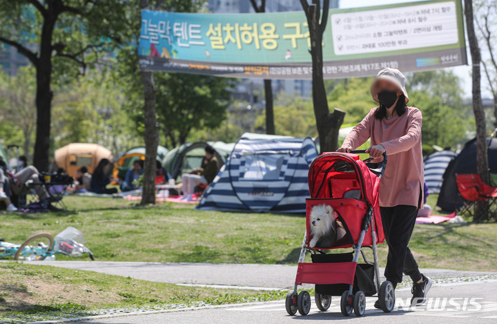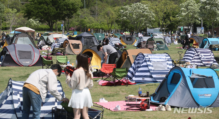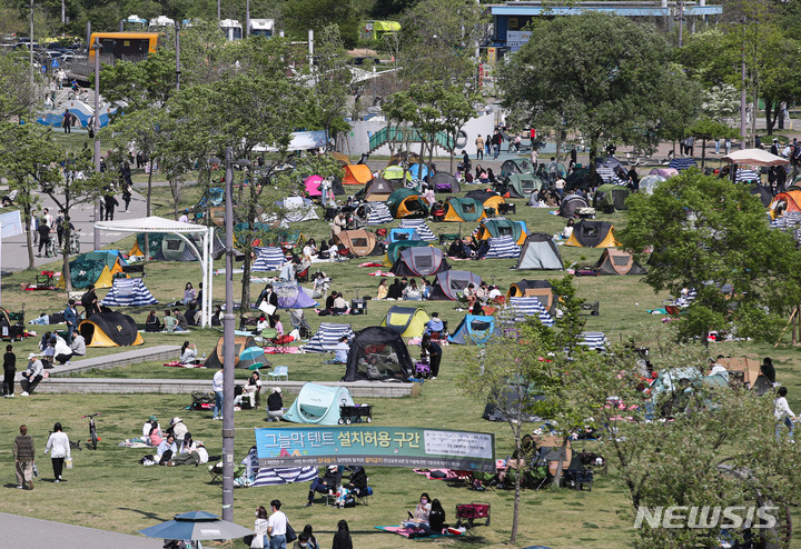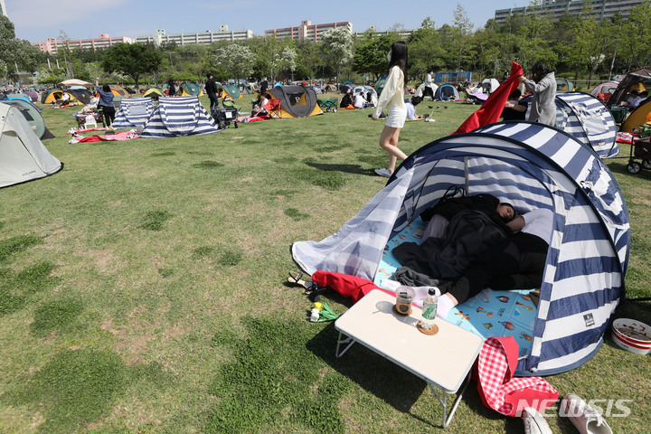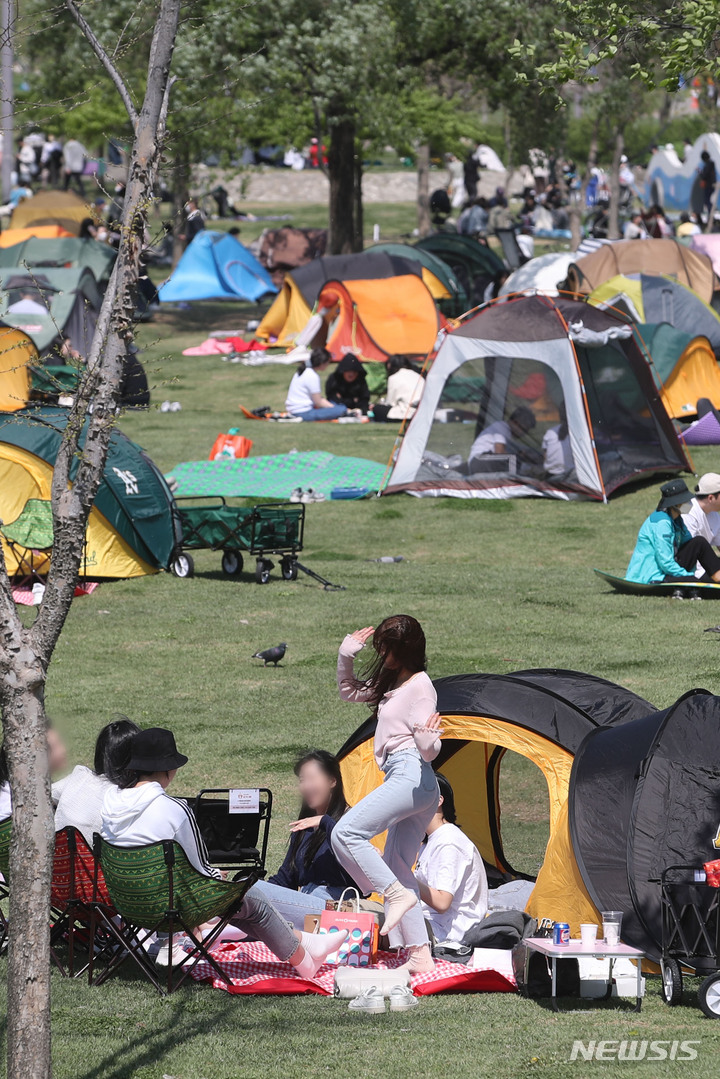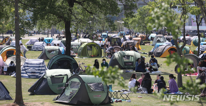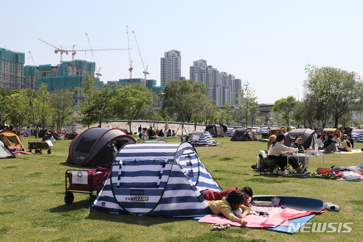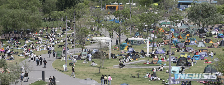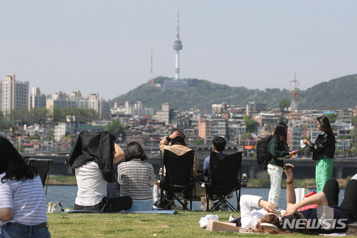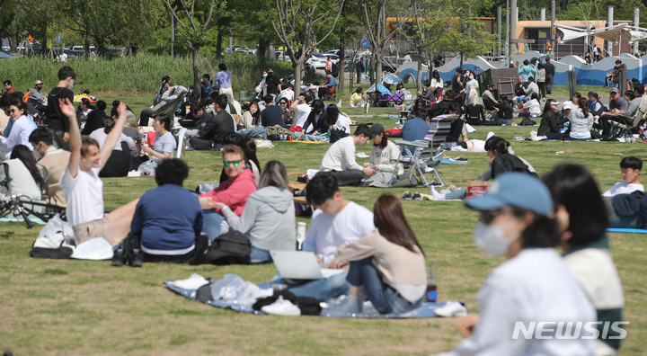 【NEWSIS】5月最初の日曜日だった1日午後、ソウル市瑞草区の盤浦漢江公園でくつろぐ人々。