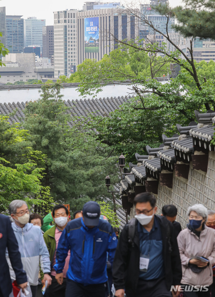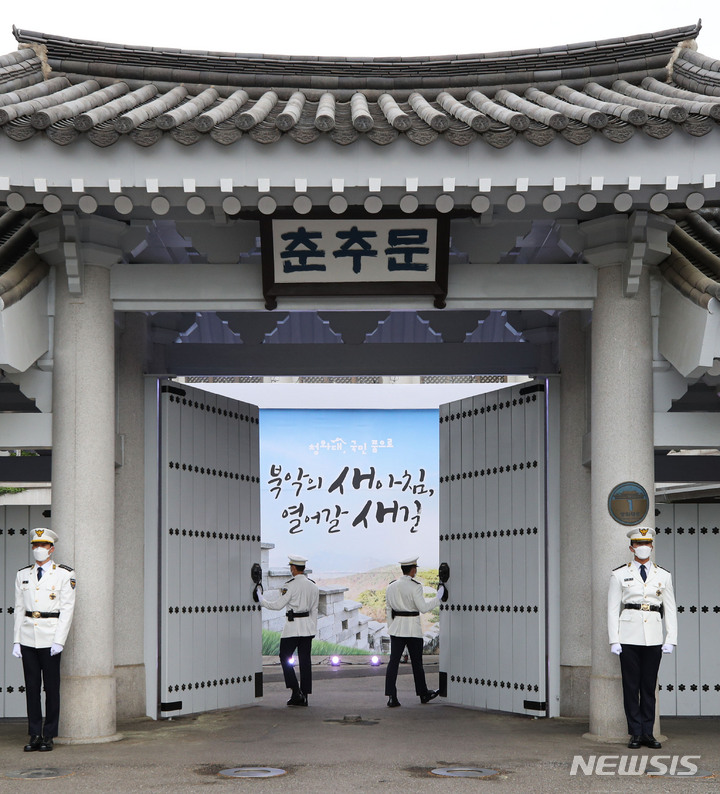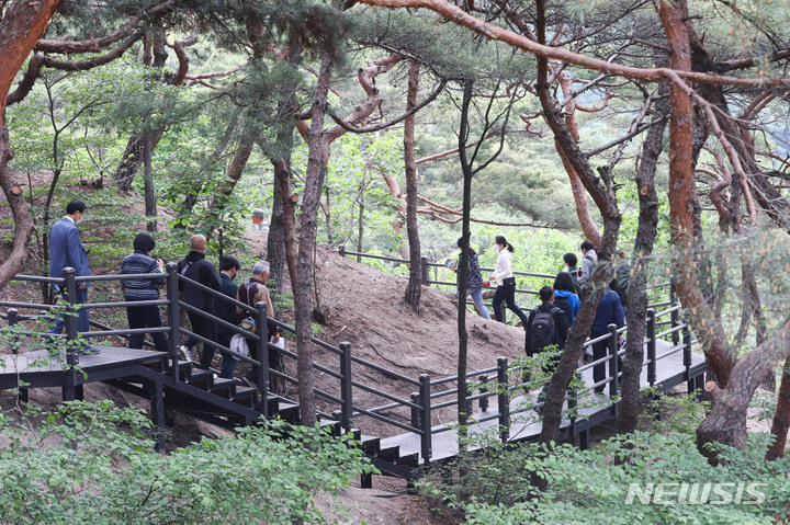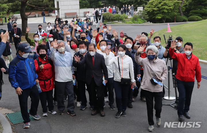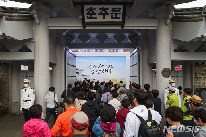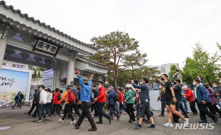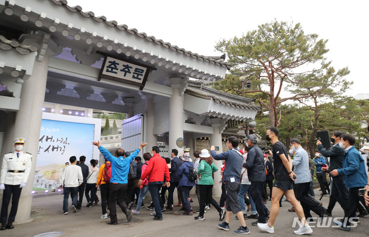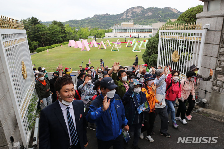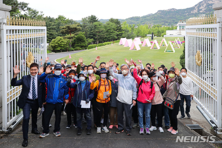第20代大統領就任式に当たる10日午前、ソウル市鍾路区の大統領府(青瓦台)春秋門が開き、登山道開放イベントが行われた。