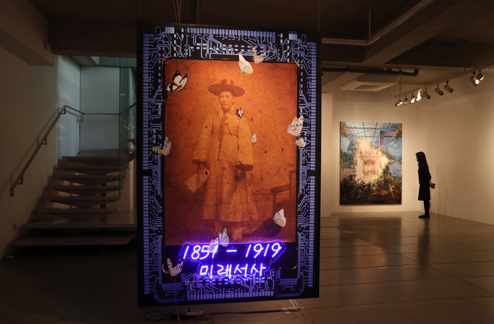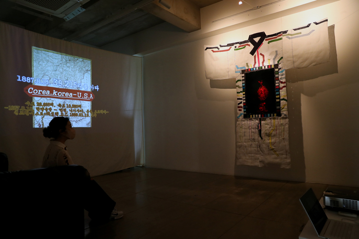 書画家の姜璡熙(カン・ジニ)=1851-1919=記念展「縁:つながる」の開幕を前に、ソウル市江南区の芸画廊で23日、作品公開イベントが行われた。写真は、作家ピョン・ジェオンが姜璡熙の米国での旅程をニューメディア作品として解きほぐしたものだ。姜璡熙は1888年に大韓帝国公使館員として米国に渡った人のうち、唯一の書画家だ。姜璡熙は初めて米国の風景を描いた朝鮮人として、米国で数々の作品を残した。