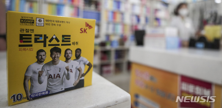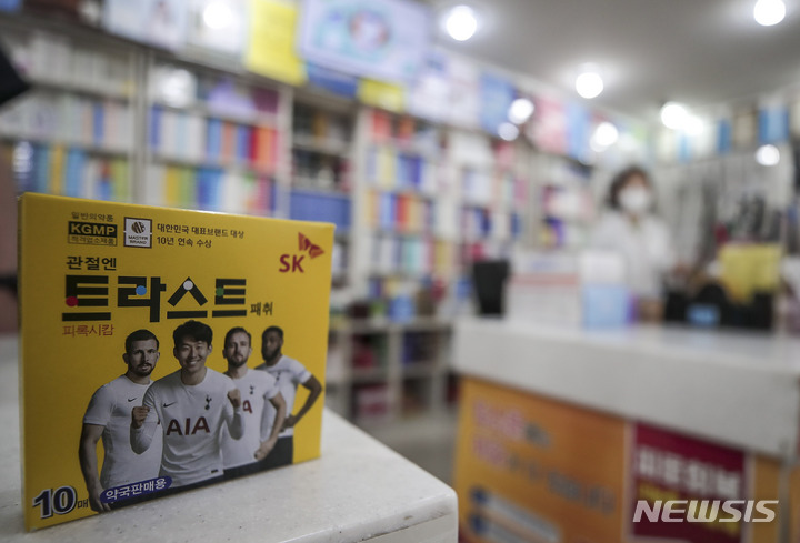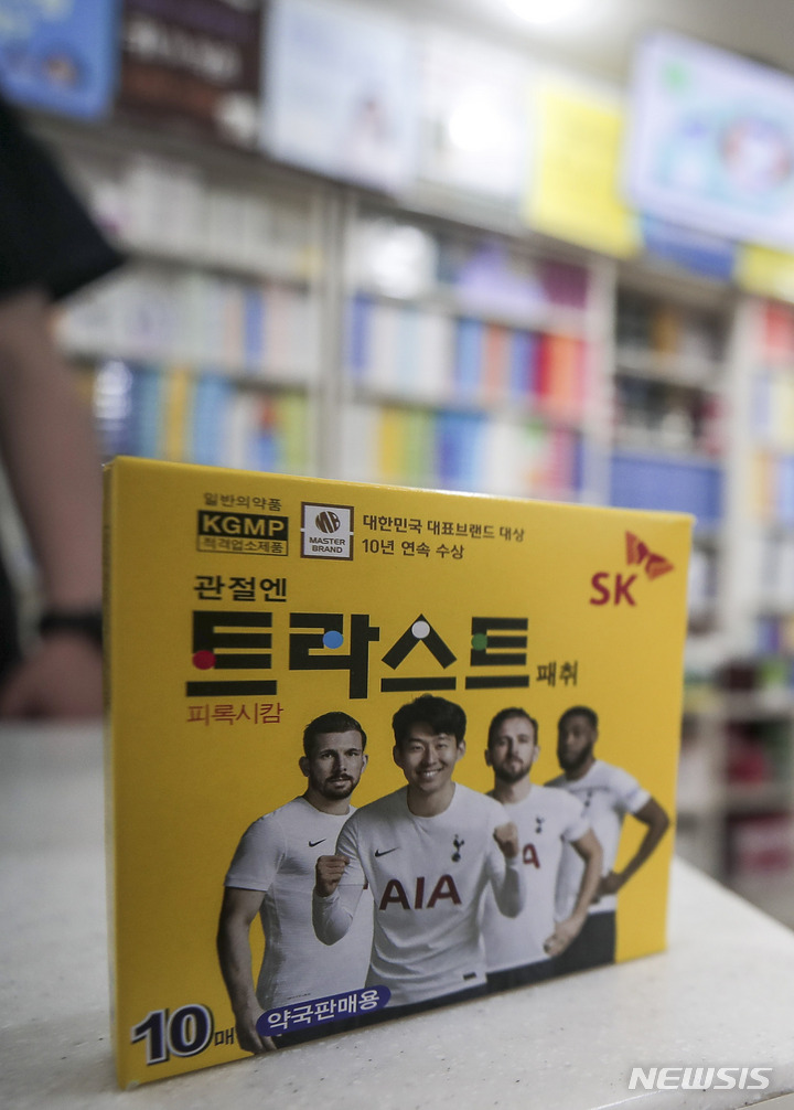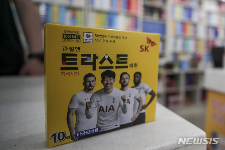 ソウル市内の薬局に25日、「トラスト」リニューアル・エディションが置かれていた。SKケミカルは、ソン・フンミンが所属するトッテナム・ホットスパーFCとライセンス契約を結び、選手たちの写真がデザインされた商品を発売したと発表した。