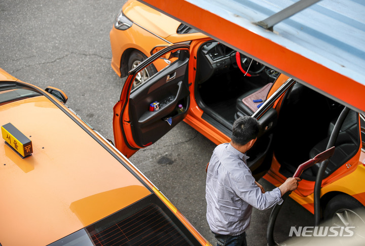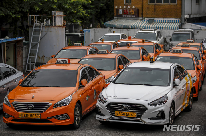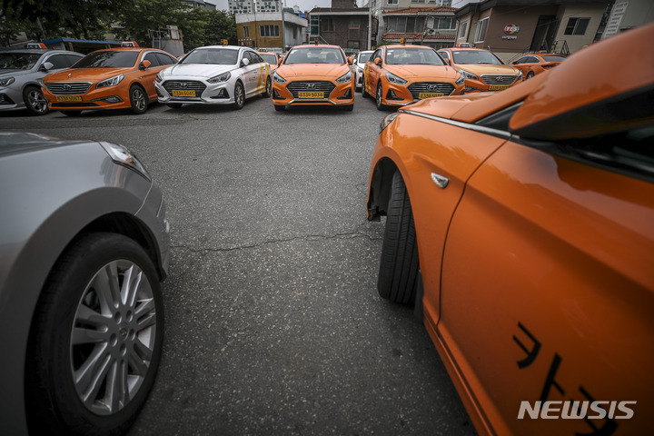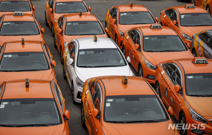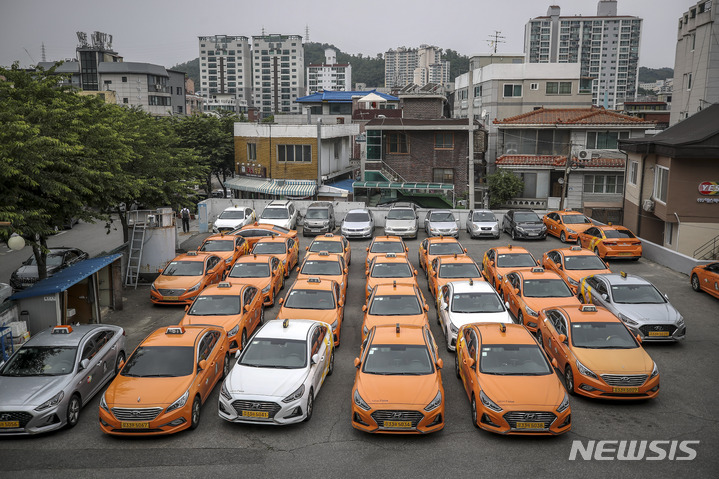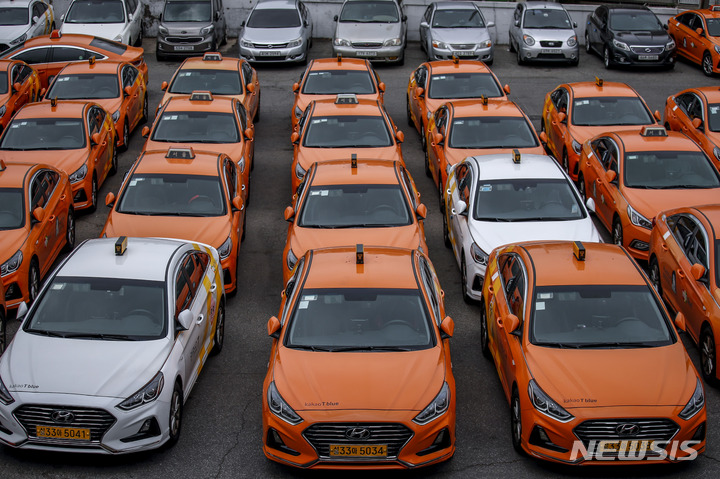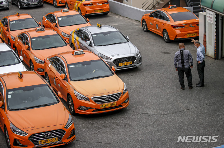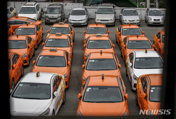 30日、ソウル市内のタクシー会社の車庫にはたくさんのタクシーがあった。ソーシャル・ディスタンス(社会的距離)の確保措置が解除され、深夜に帰宅する人たちの、いわゆる「タクシー大乱」が起こっているが、ドライバーの数が急減していることに対する代案が出ていない。全国タクシー運送事業組合連合会によると、2月基準で全国のタクシードライバーの数は23万9434人で、1年前に比べ8%以上減少したという。このうち、法人タクシーのドライバー数も2019年12月に比べ30%以上減ったことが分かった。