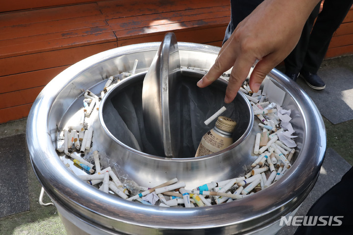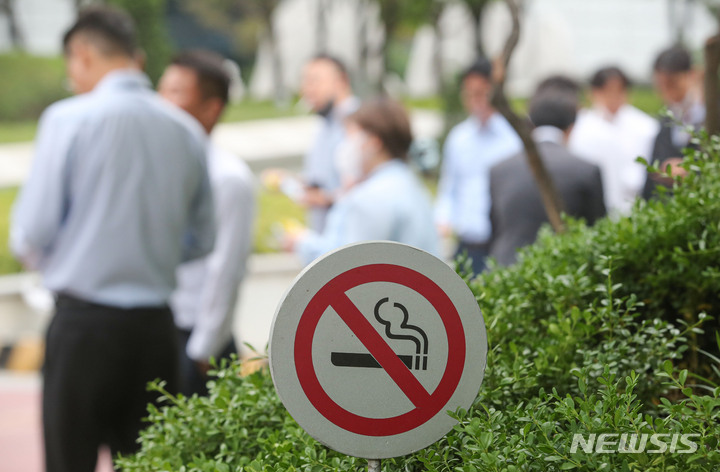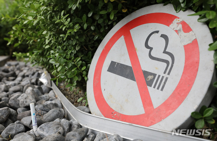 世界禁煙デーに当たる5月31日午前、ソウル市内の通りには禁煙の案内板が立てられていた。