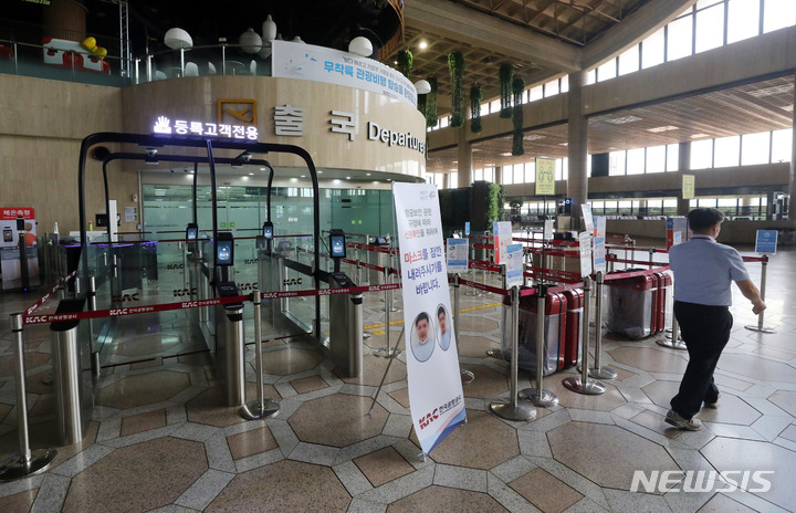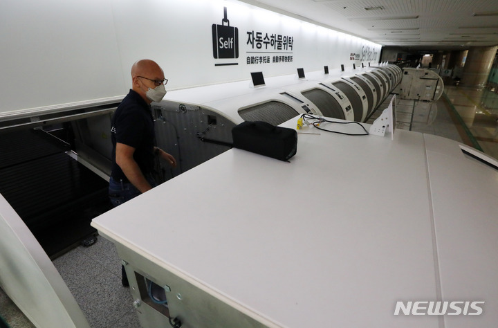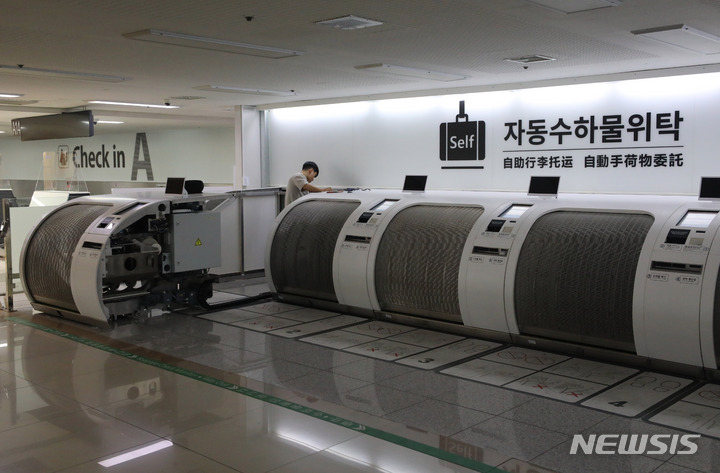 日本が来月からパッケージツアー客の入国を認めると決め、韓国航空各社の日本路線活性化が期待されている。写真は31日午後、金浦国際空港国際線ターミナルで、空港関係者らが自動手荷物サービスの設備のメンテナンスを行っているところ。