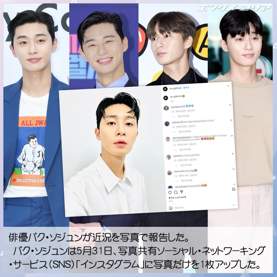 俳優パク・ソジュンが近況を写真で報告した。パク・ソジュンは5月31日、写真共有ソーシャル・ネットワーキング・サービス(SNS)「インスタグラム」に写真だけを1枚アップした。公開された写真のパク・ソジュンは真っ白なシャツを着た端正な姿で...