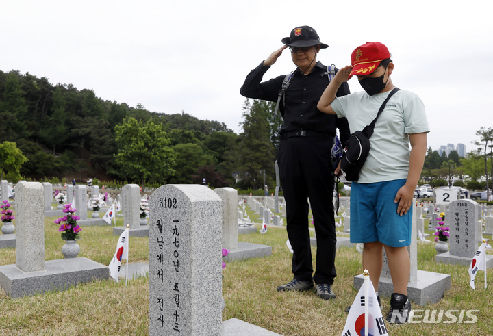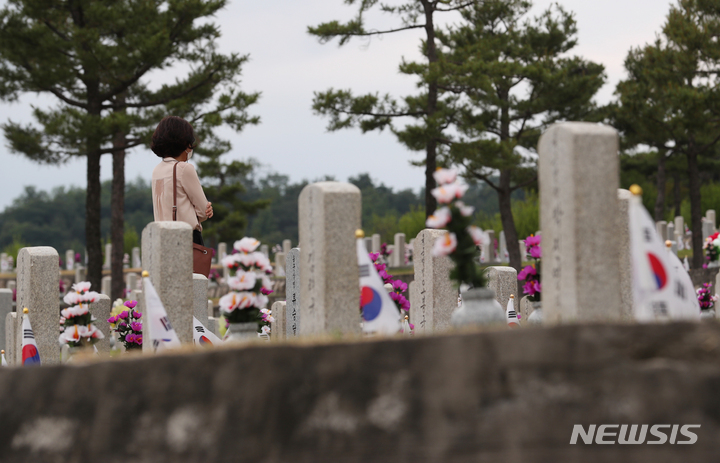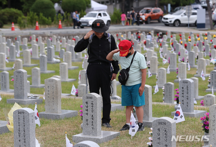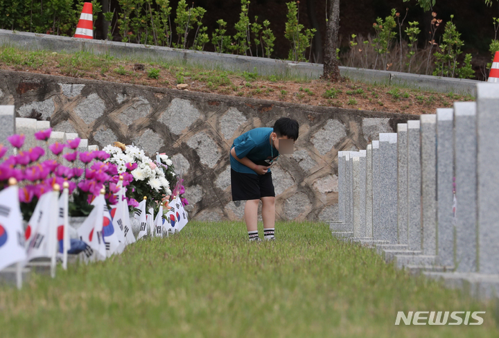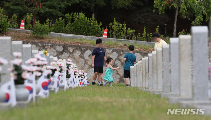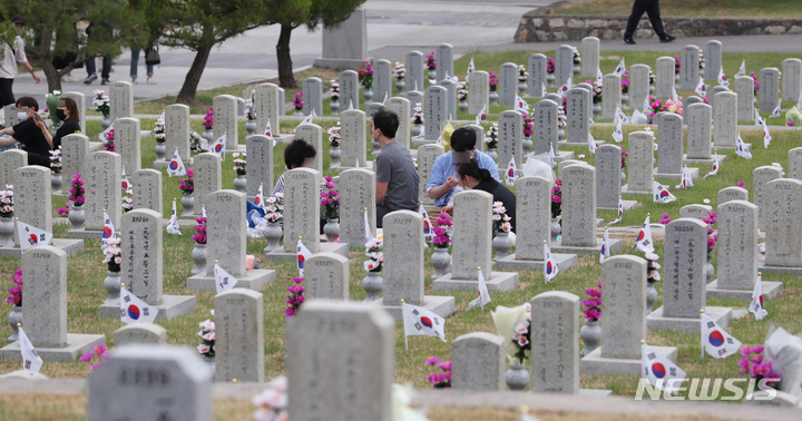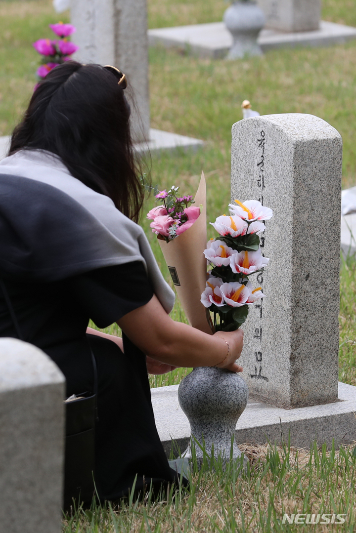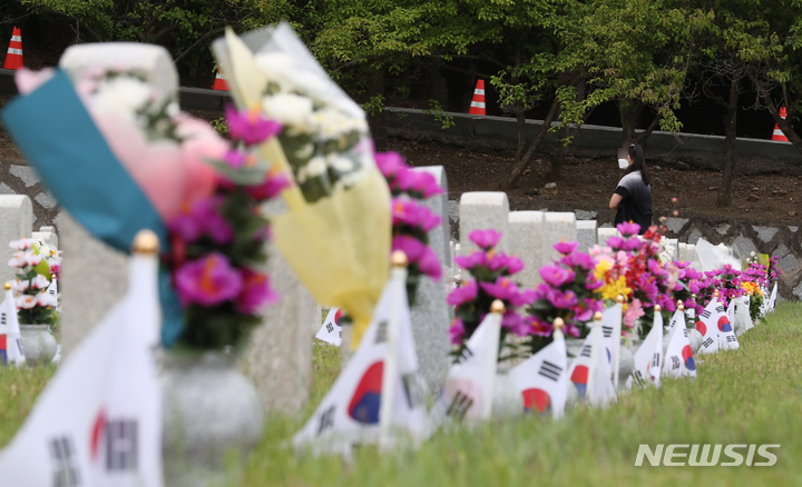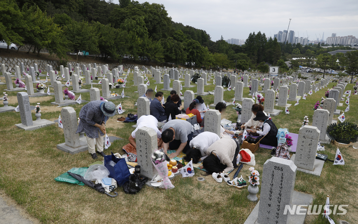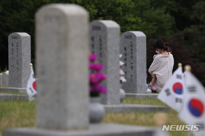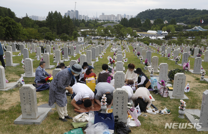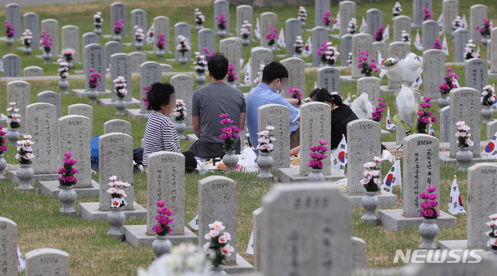 【NEWSIS】殉国者や戦没兵を追悼する韓国の記念日「顕忠日」前日の5日、墓参で国立ソウル顕忠院(国立墓地)を訪れた人々。