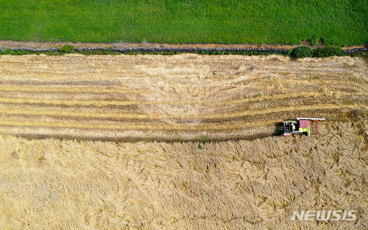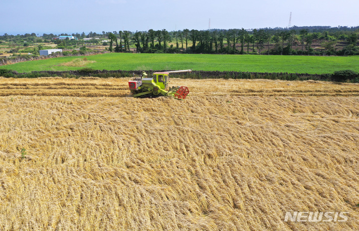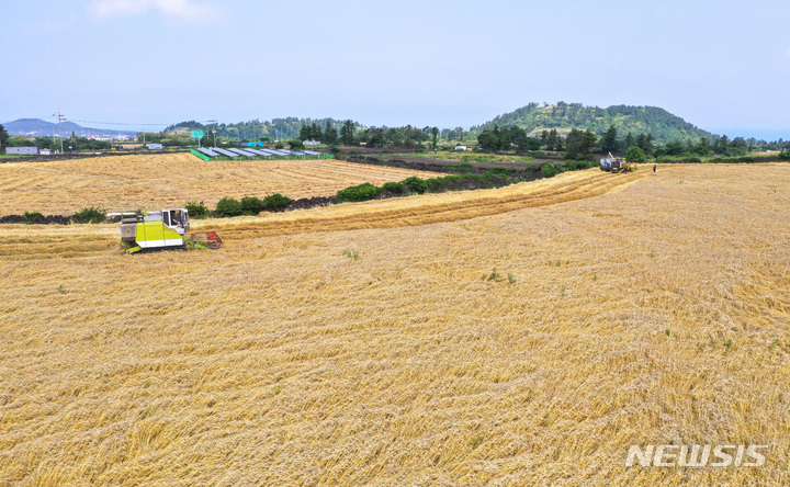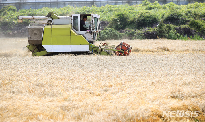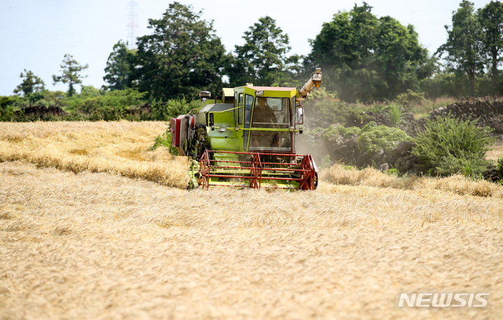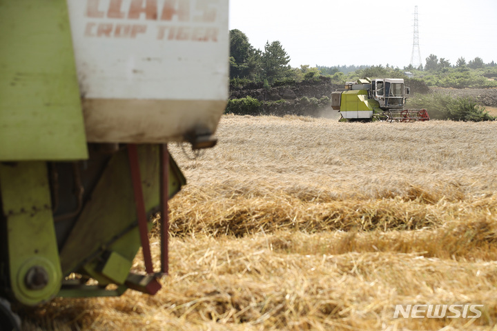 ロシアのウクライナ侵攻など国際情勢の不安定要因により穀物価格が暴騰する中、済州市翰林邑今岳里の国産小麦生産団地では、小麦の収穫真っ最中だった。国産小麦の食料自給率は0.8%にすぎないが、戦争の余波で穀物価格が急騰したことにより国際小麦価格は60%近く上昇したことが判明した。