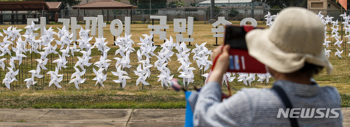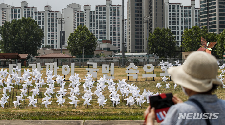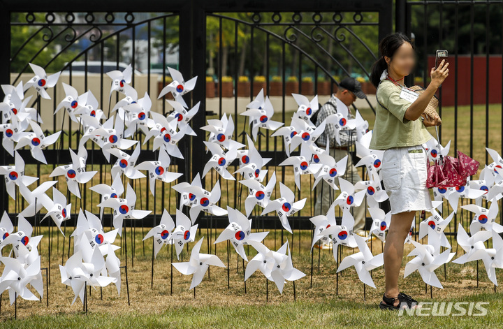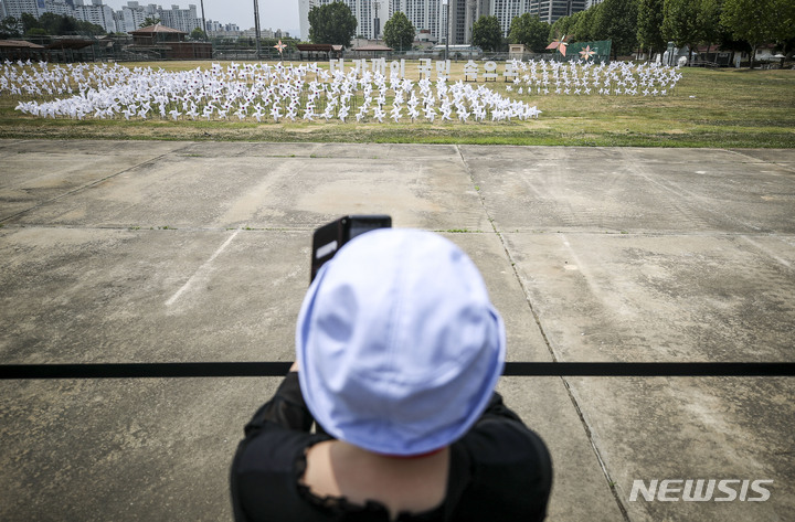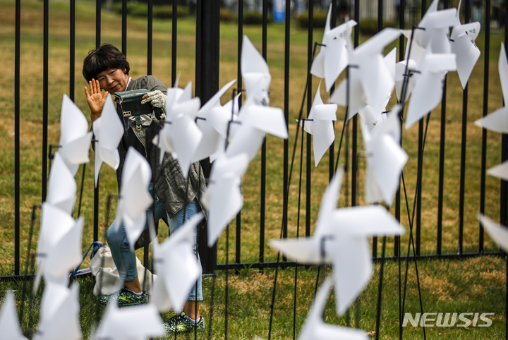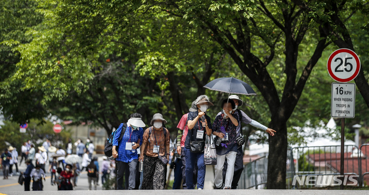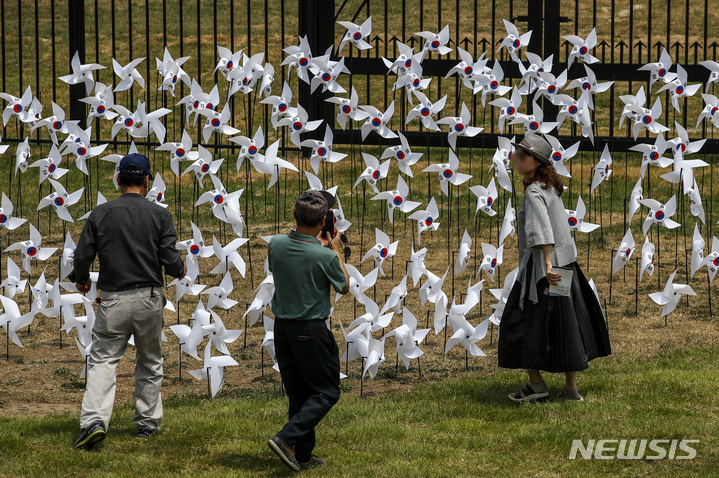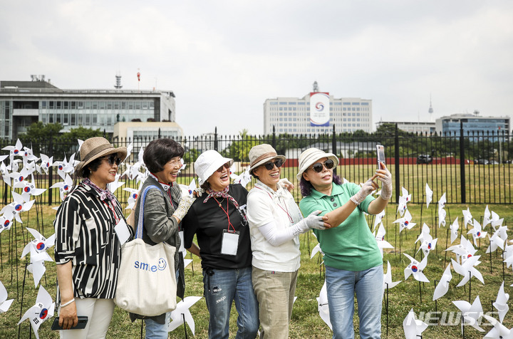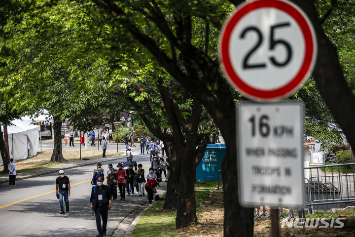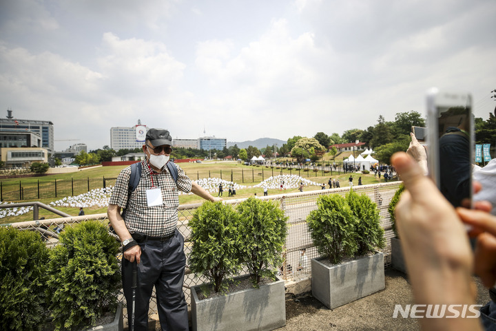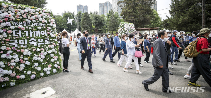 大統領執務室の近くに位置する竜山公園が試験的に開放された10日午前、同公園を訪れて中を見て回る市民の様子。竜山公園は今月19日まで、朝9時から夕方7時にかけて毎日5回、1回につき500人ずつ、一日2500人の観客を受け入れる。