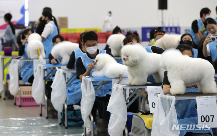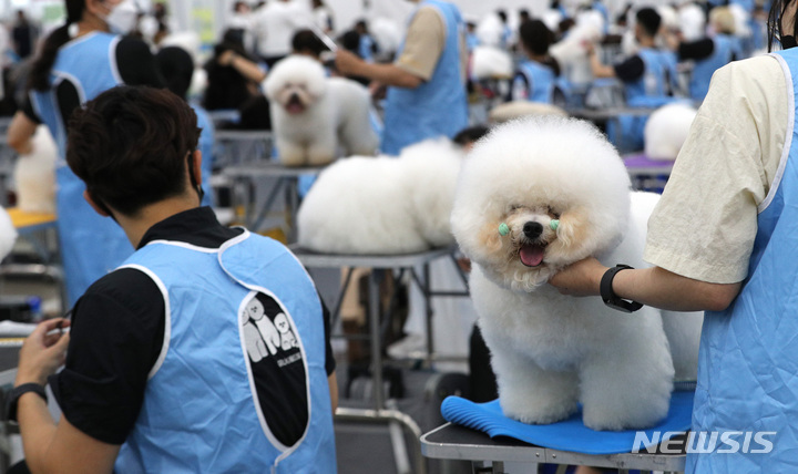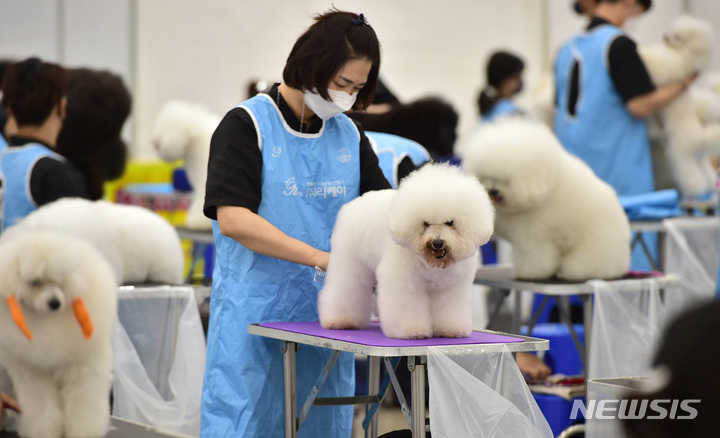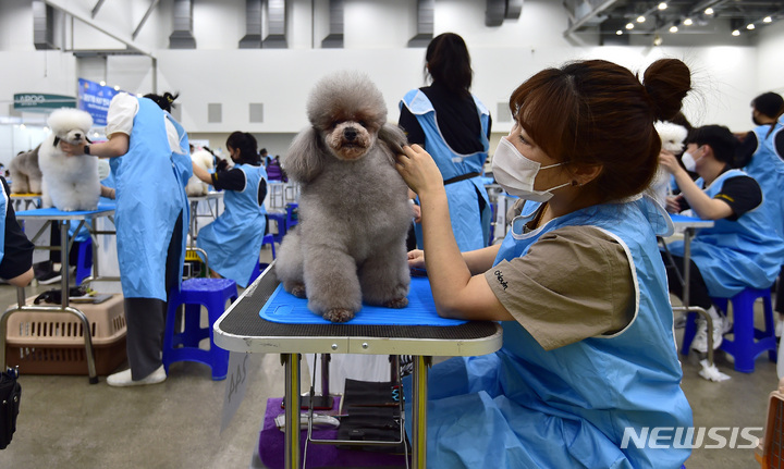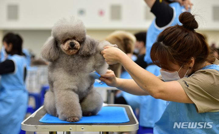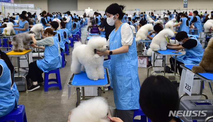 10日から「第19回大邱ペットショー」が開かれている大邱市北区のEXCOで、愛犬美容師資格検定およびコンテストが行われている様子。今回の行事は150社参加、300ブース規模で開催された。
