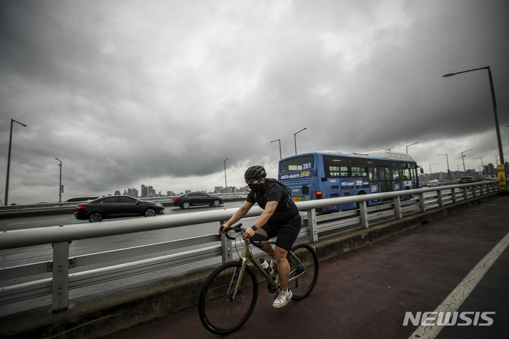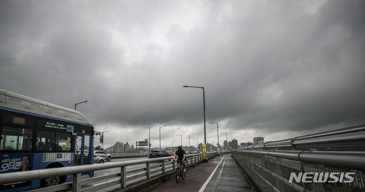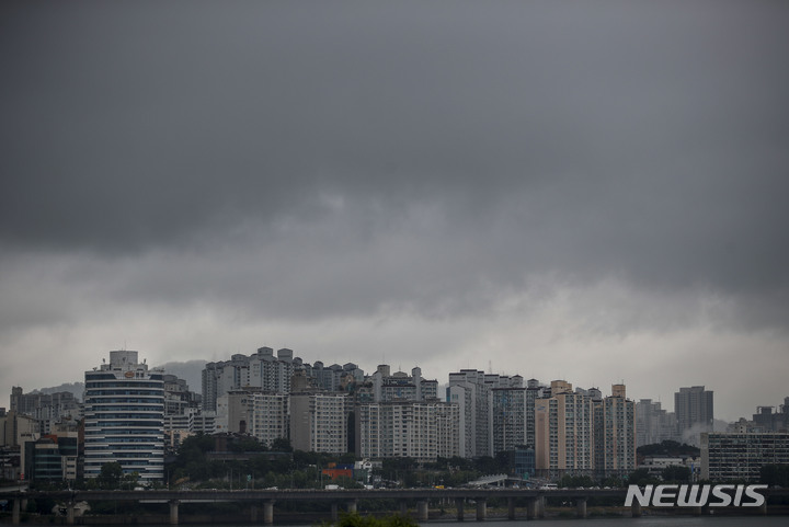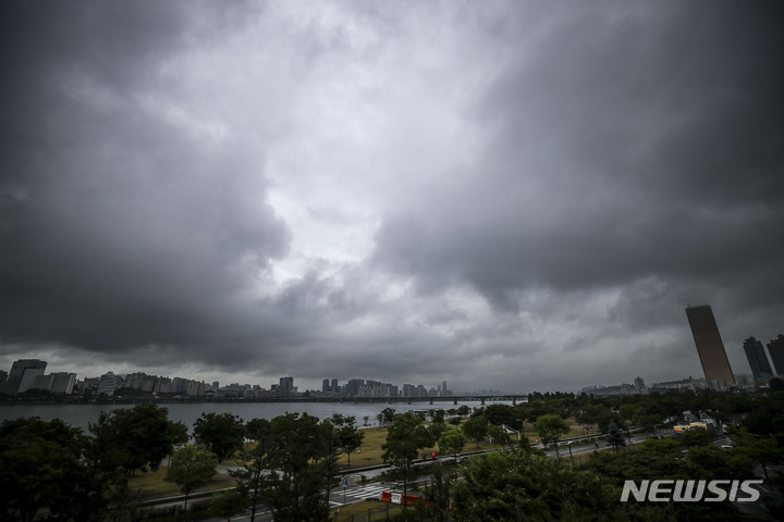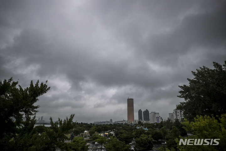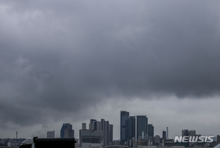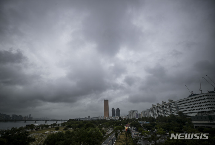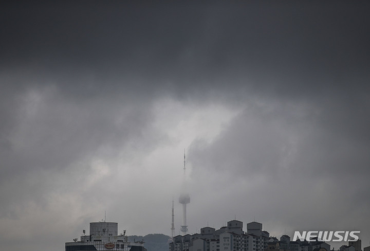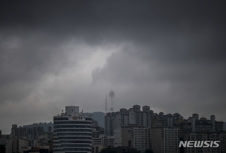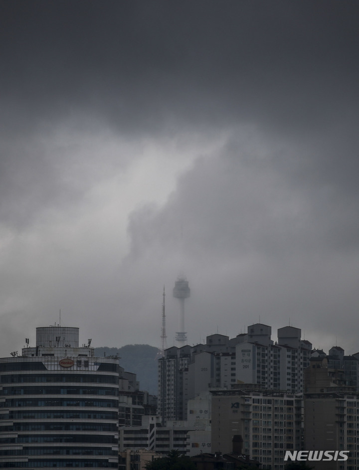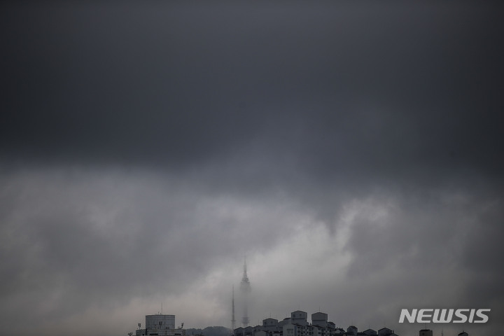 雨が降り、くもりの天気が続いている中、ソウル市内の空は16日午前、黒い雲に覆われていた。