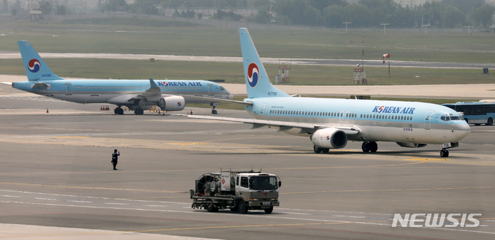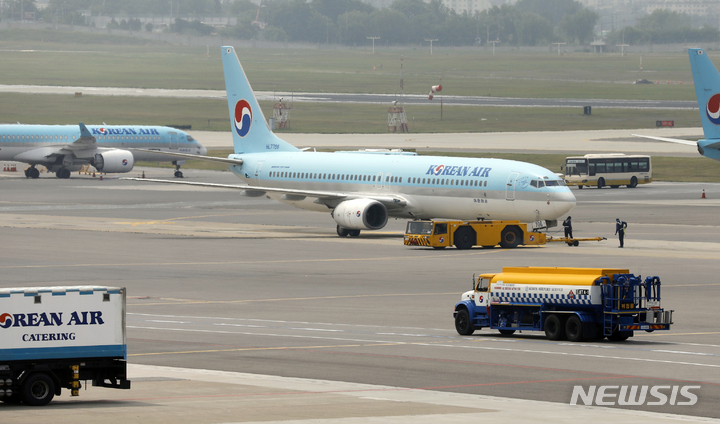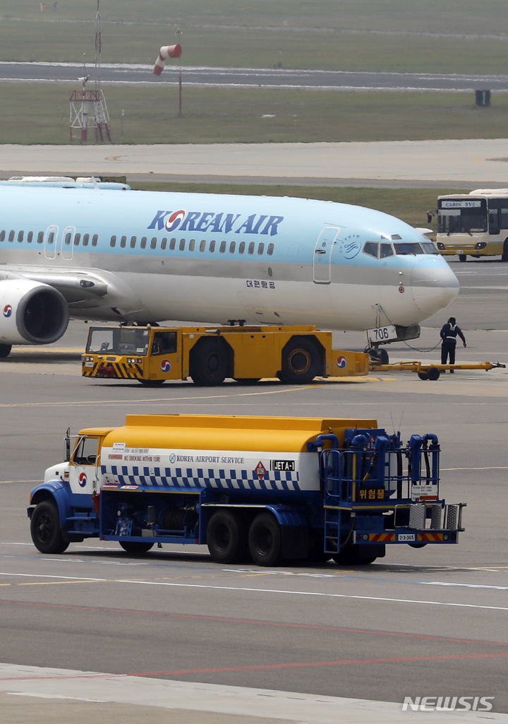 国際的な石油価格の上昇に伴い、国際線の航空券に賦課される燃油サーチャージがまたも過去最高を更新した。韓国航空業界によると、7月の大韓航空国際線の燃油サーチャージは6月より3段階高い22段階が適用され、距離によって4万2900ウォン(約4466円)から最大33万9300ウォン(約3万5319円)が賦課される。国内線の燃油サーチャージは、今月の1万7600ウォン(約1832円)から来月には1万9800ウォン(約2061円)に引き上げられる。これにより、消費者が支払う航空運賃も一段と高くなる見込みだ。写真は17日、金浦空港の滑走路と駐機場の様子。