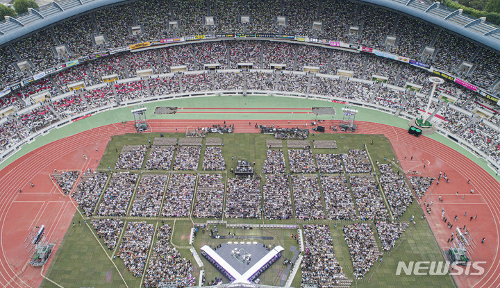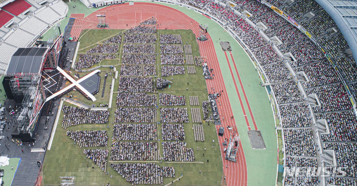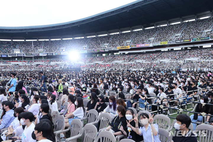 18日午後、ソウル市松坡区蚕室の総合運動場で開かれた「第28回ドリームコンサート」にて、公演を楽しんでいる観衆の様子。
