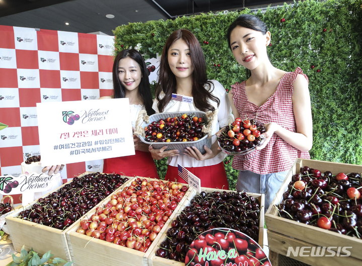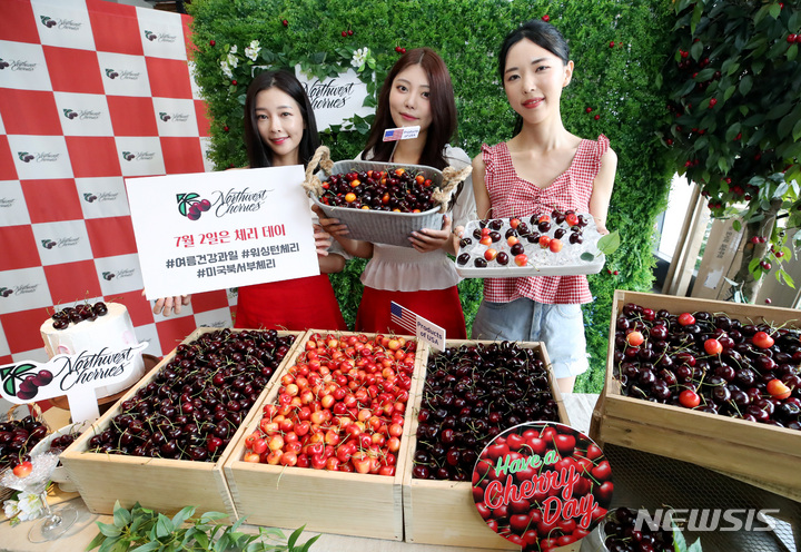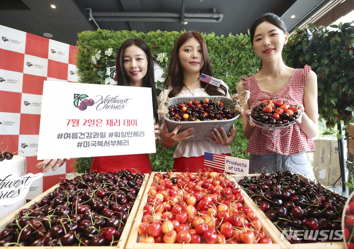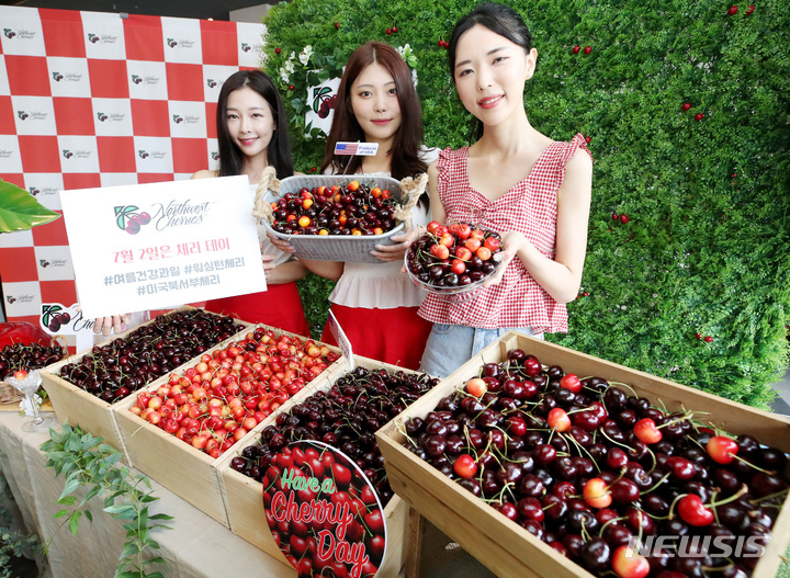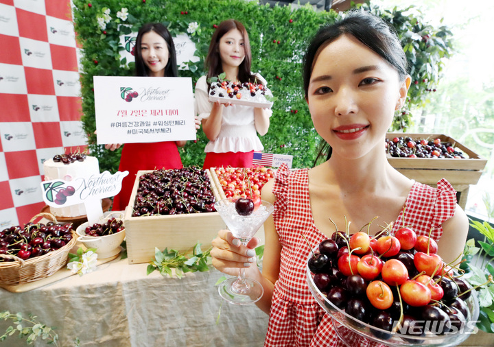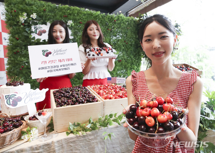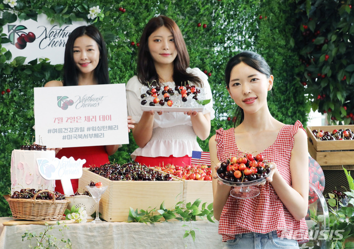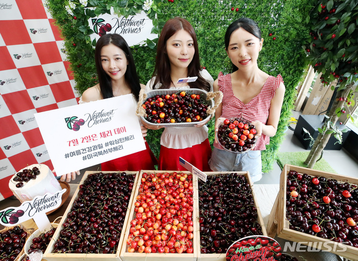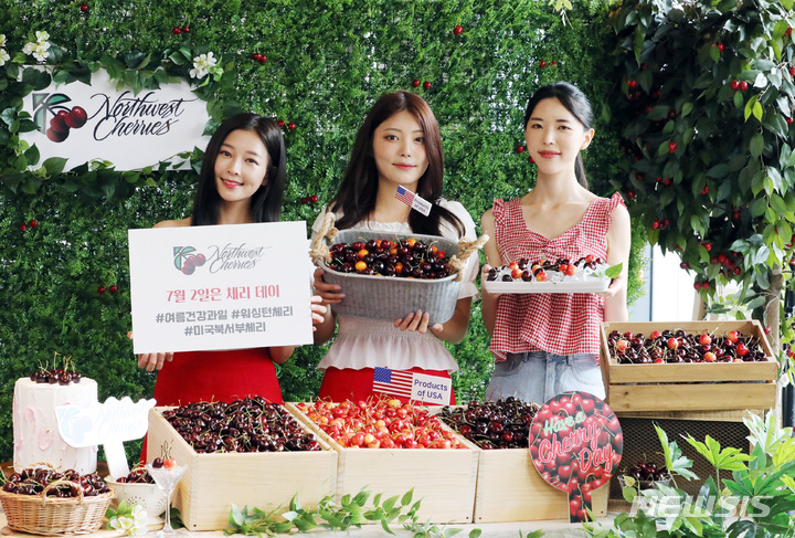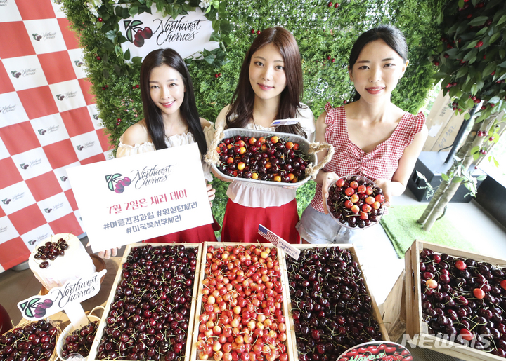 ソウル市江南区のグレースケールカフェで1日、米国北西部チェリー協会主催「7月2日チェリーデイ」イベントでコンパニオンらがチェリーをPRした。チェリーデイ・イベントは毎年、米国北西部チェリー協会がワシントン産チェリーの優秀性を広めるために開催してきた。