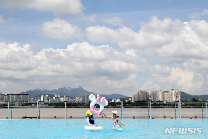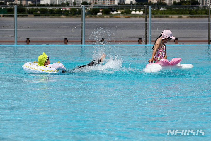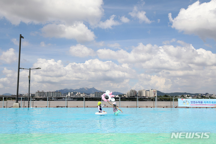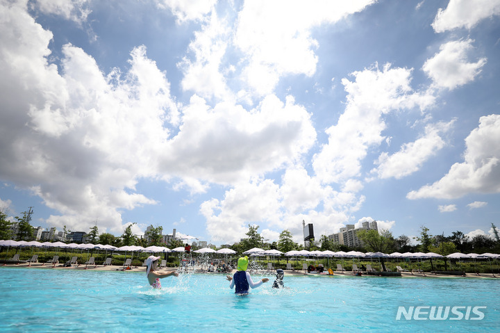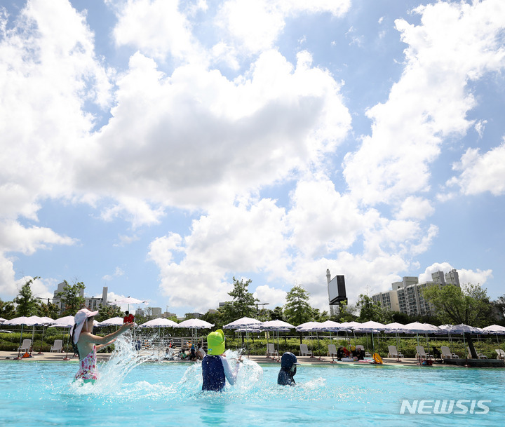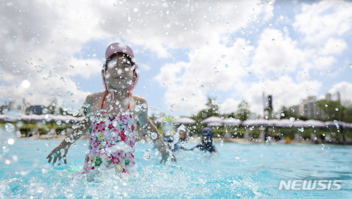 晴天となった1日午後、ソウル市永登浦区の楊花水遊び場では、子どもたちが水遊びを楽しんでいた。