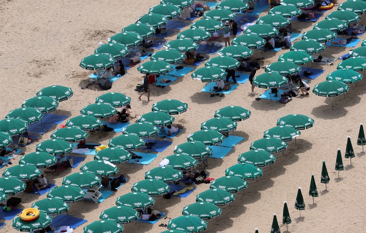 猛暑注意報 海雲台海水浴場は大にぎわい/釜山