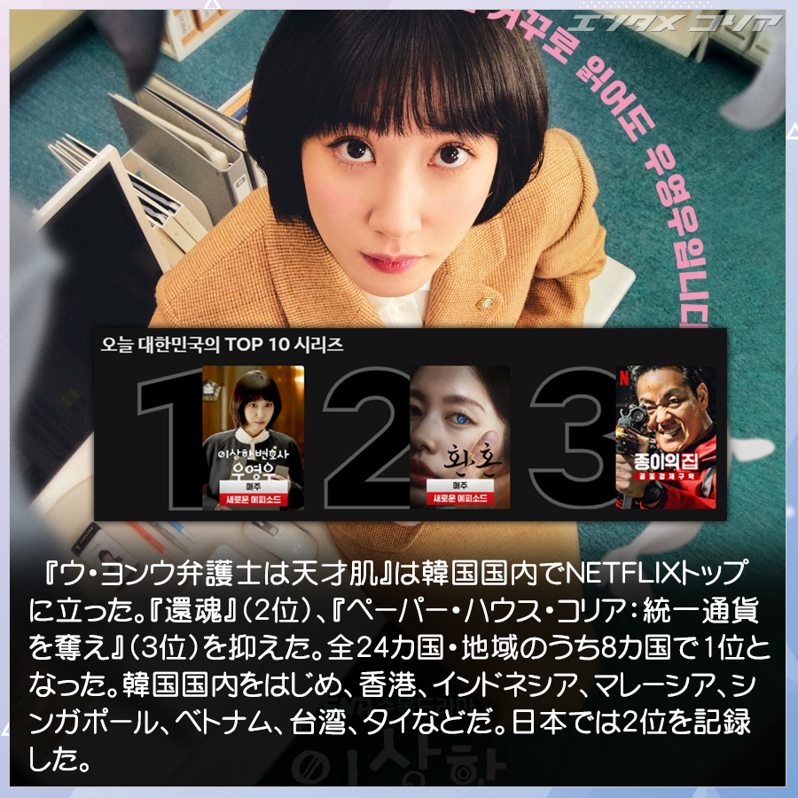 パク・ウンビン主演『ウ・ヨンウ弁護士は天才肌』、世界NETFLIX10位