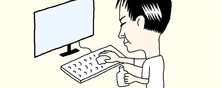指が常に触れるコンピューターのキーボードは細菌が多い。化粧用コットンに消毒用アルコールを少し付けてキーボードとキーの間をふくときれいになる。