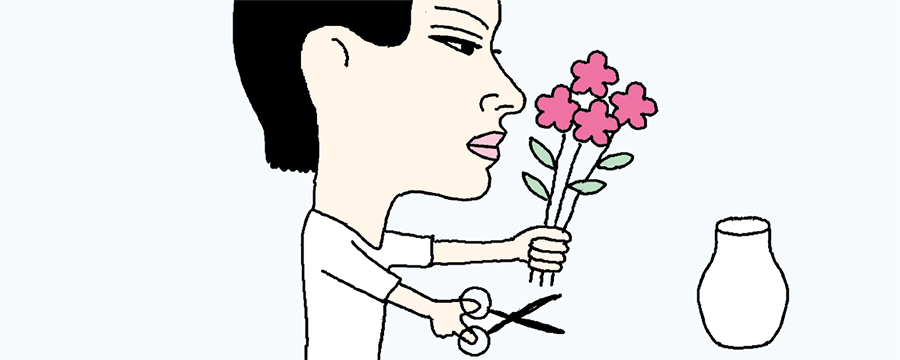 切り花を長持ちさせるには、花瓶に入れる時、茎の下側に付いた葉をすべて取り除いた方がいい。葉は水に浸すと腐りやすく、花もすぐ枯れてしまう。