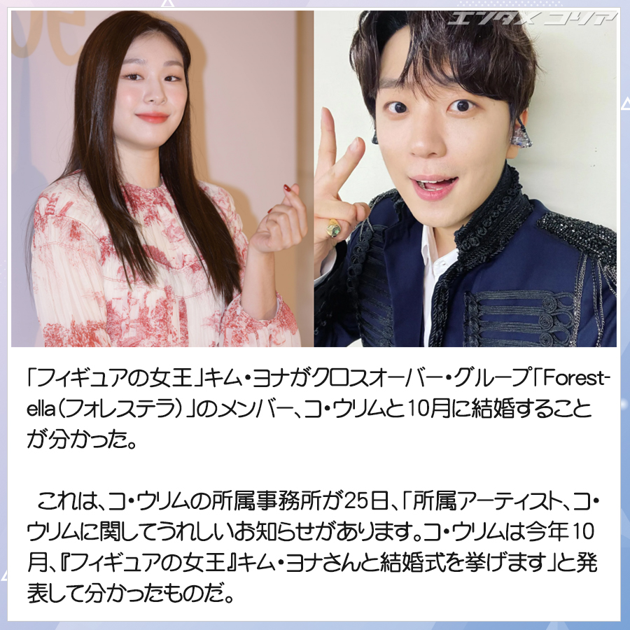 「フィギュアの女王」キム・ヨナがクロスオーバー・グループ「Forestella(フォレステラ)」のメンバー、コ・ウリムと10月に結婚することが分かった。 これは、コ・ウリムの所属事務所が25日、「所属アーティスト、コ・ウリムに関してうれしいお知らせがあります。コ・ウリムは今年10月、『フィギュアの女王』キム・ヨナさんと結婚式を挙げます」と...
