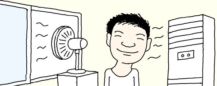 暑い部屋の温度を速やかに下げるには、窓を開けて扇風機を窓の外の方に向けてつけてみよう。室内の空気が循環して、温度が早く下がる。