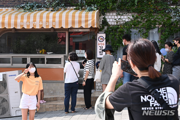 4日午後、ドラマ『ウ・ヨンウ弁護士は天才肌』のロケが行われた京畿道水原市八達区行宮洞の飲食店「ウ・ヨンウ・キムパプ」前は、食事や記念撮影をしようとする市民で混み合っていた。このところドラマ『ウ・ヨンウ弁護士は天才肌』人気の高まりに伴い、これまで沈滞していたロケ地一帯の商圏に活気が戻っている。