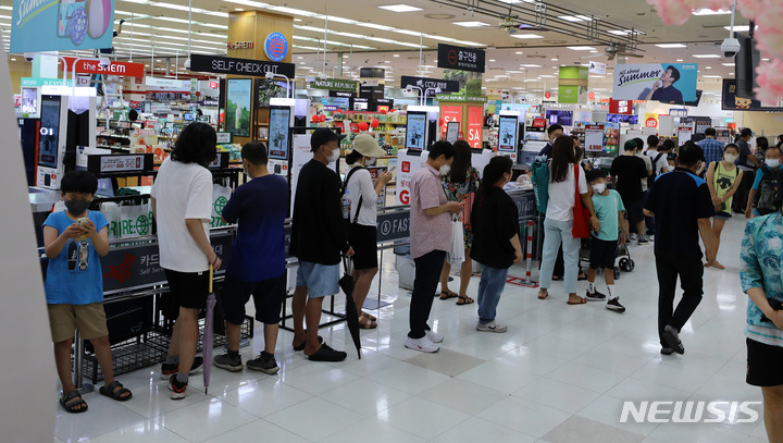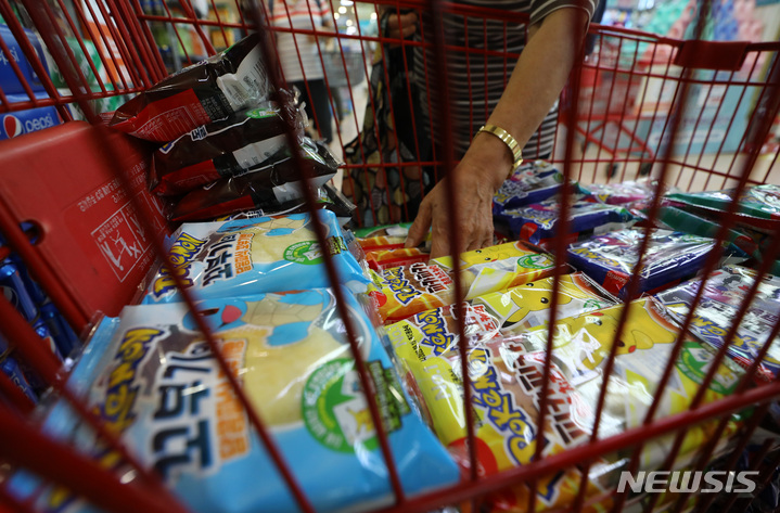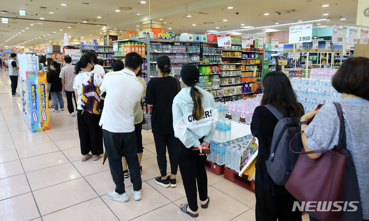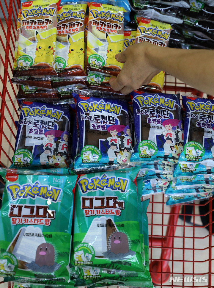 ソウル市中区の大手スーパー「ロッテマート・ソウル駅店」で10日午前、ポケモンパンを買っている市民の様子。この日、SPC三立は今年第2四半期の連結基準売上が8000億ウォン(約824億円)を突破し、歴代最大の四半期実績を記録したと発表した。