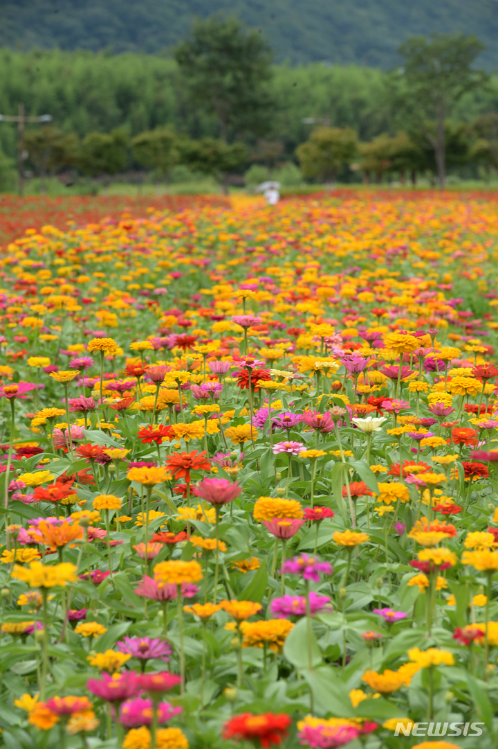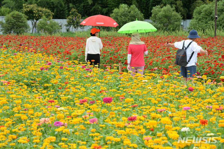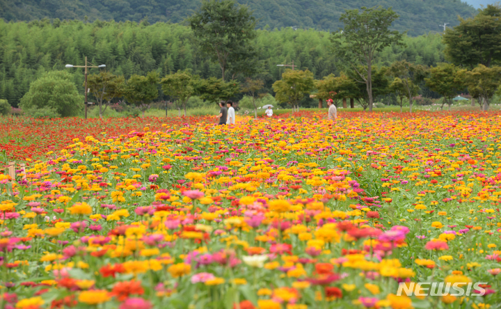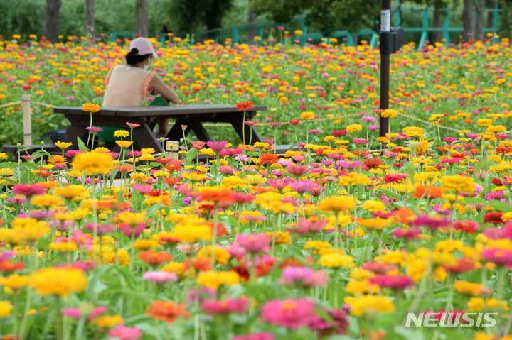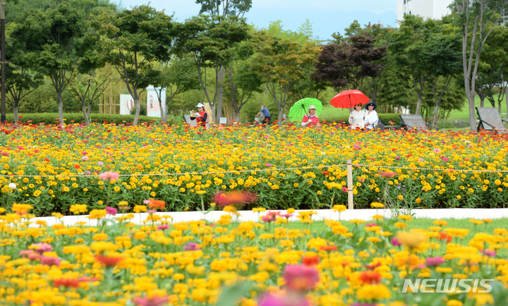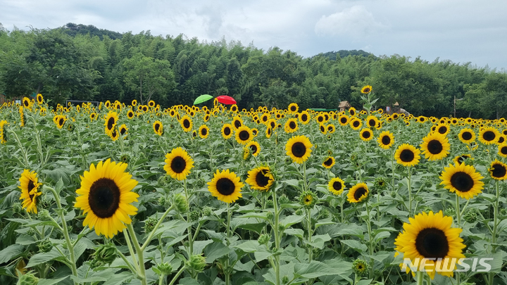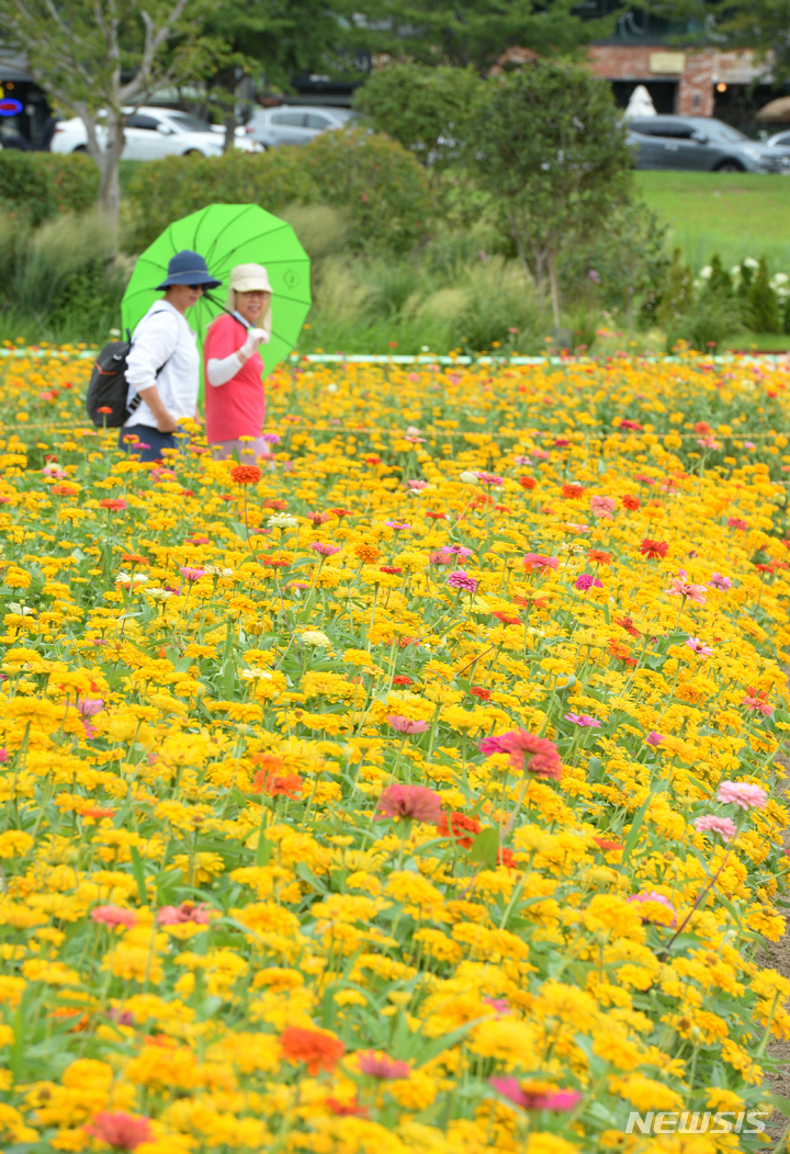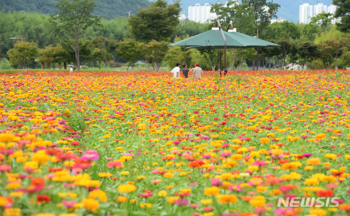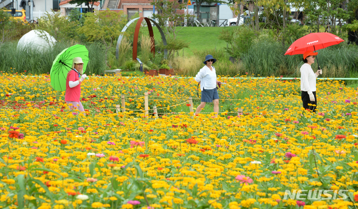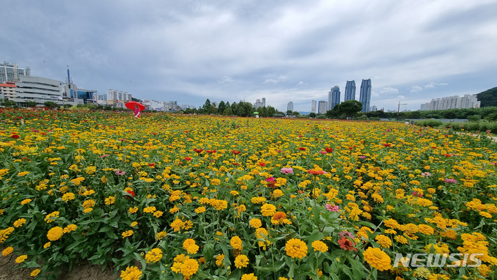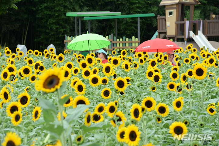 10日、ヒマワリとサルスベリが大きく花開いた太和国家庭園(蔚山市中区)の様子。
