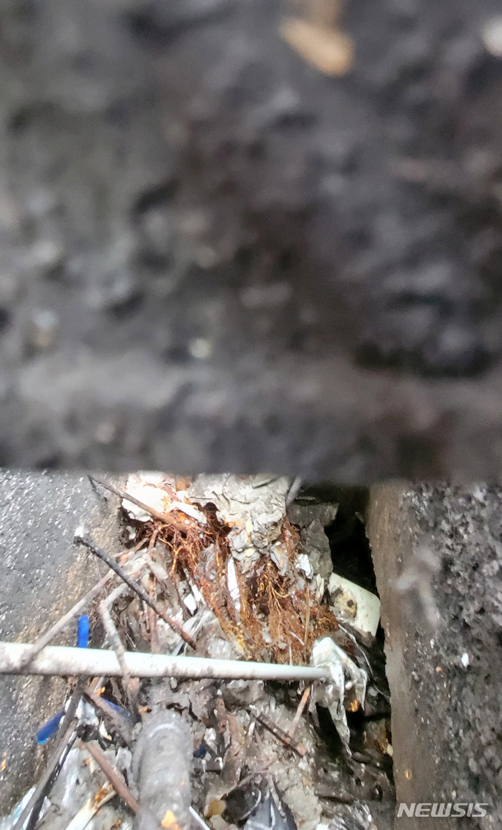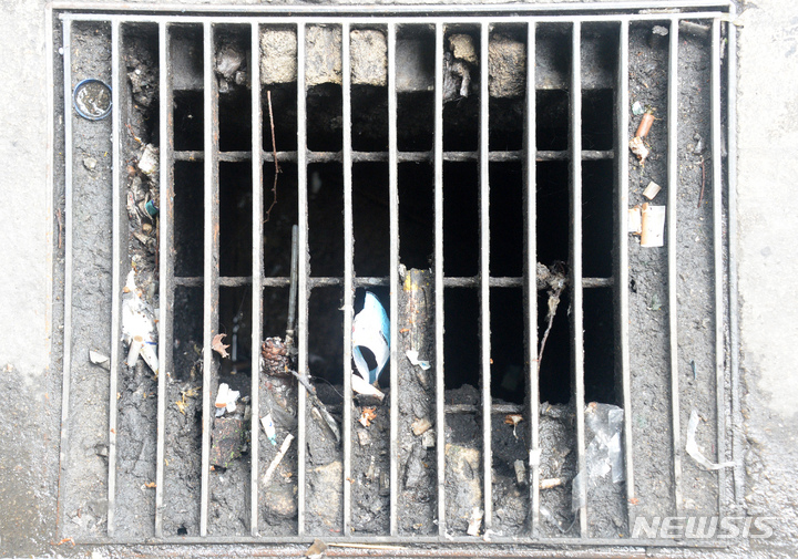 「びっしりと埋まった排水溝が洪水を呼びます」
